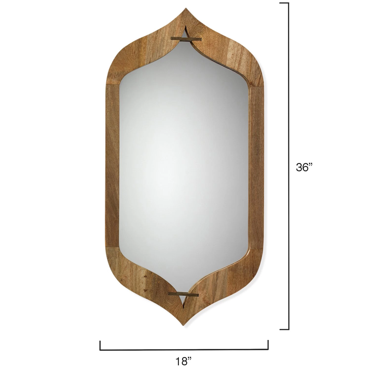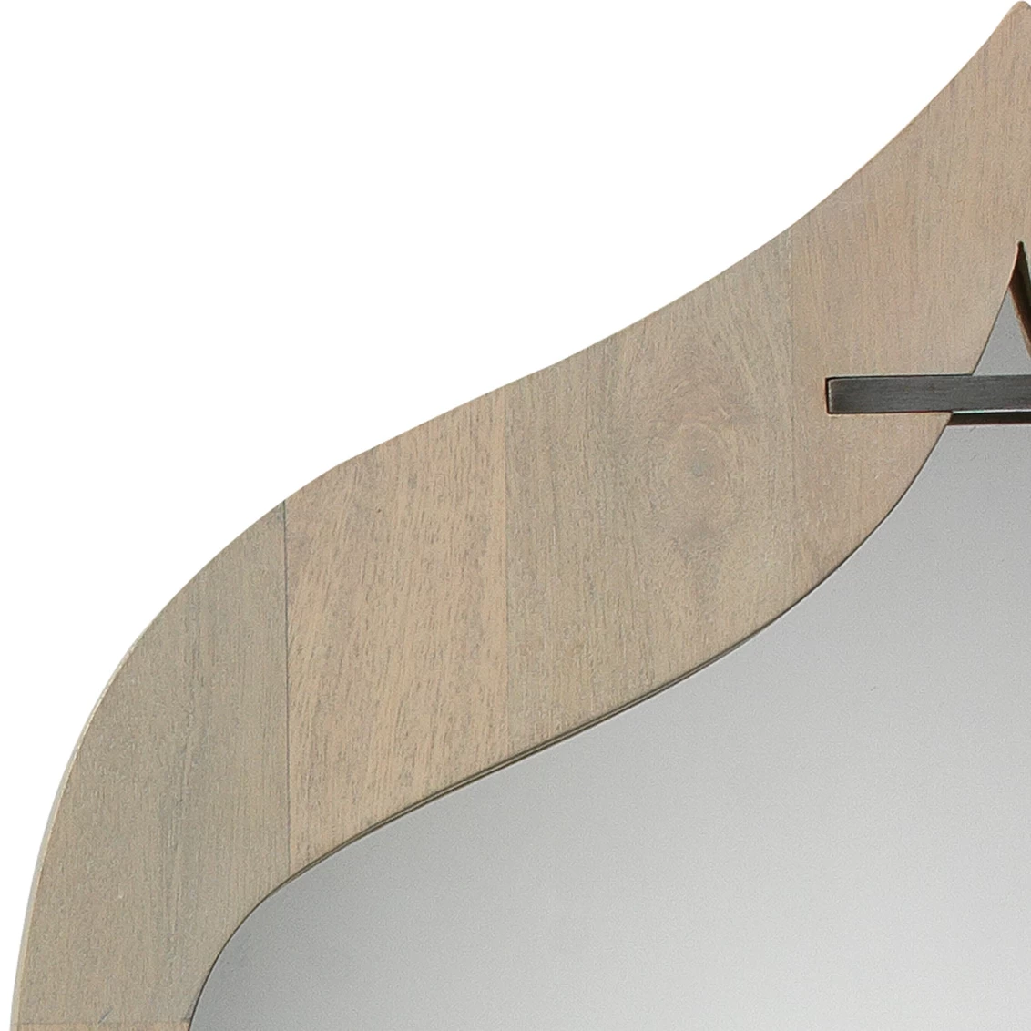 Jasmine Mirror has a unique style that can hang vertically or horizontally. Features metal bars at the ends to bring this piece to a point. Hanging hardware included. ADA compliant.