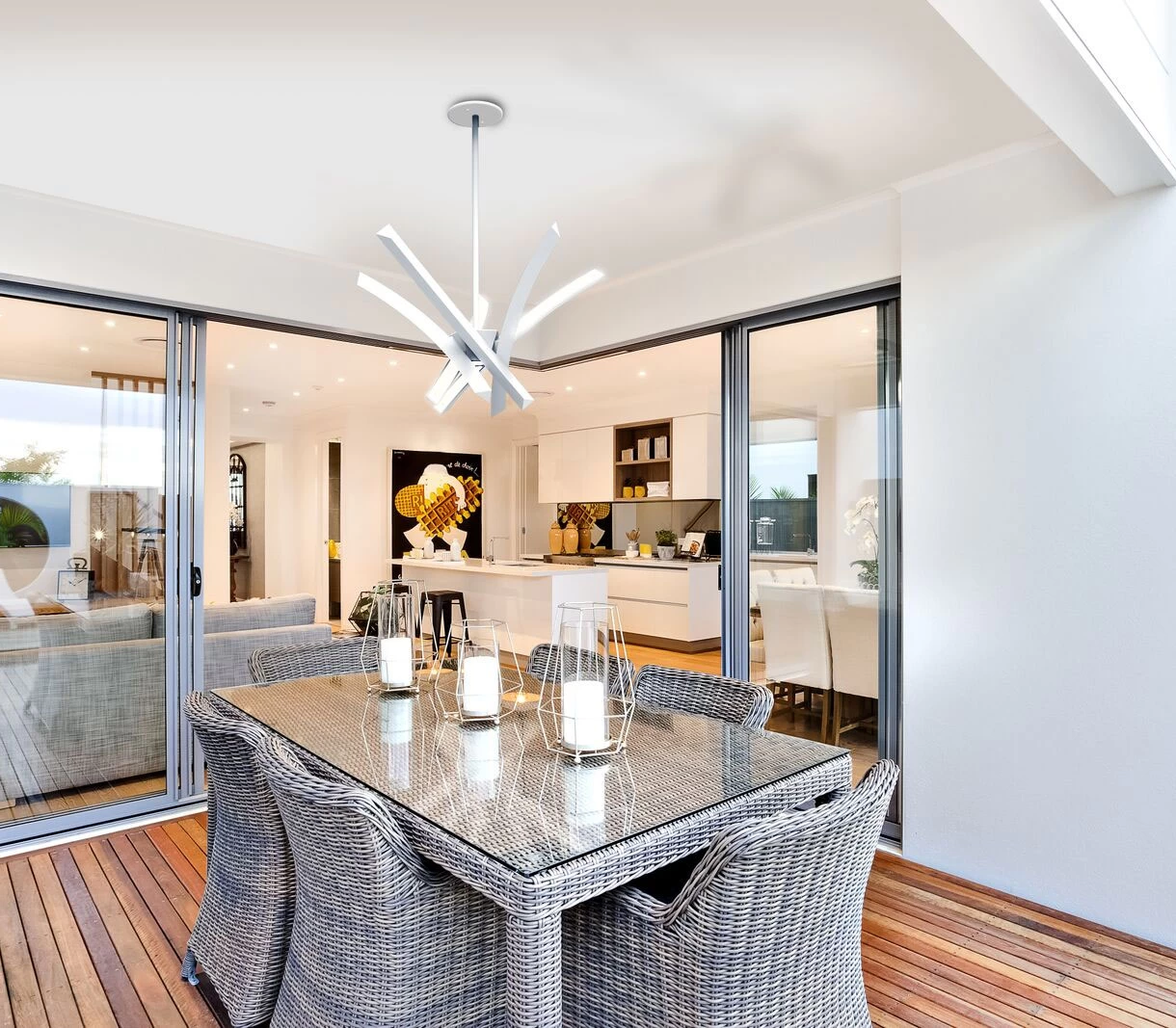 The Kattari Outdoor Pendant simultaneously offers up / down plus side illumination with a single additional circular center downlight to illuminate directly below the point of installation. Multiple lit curves intersect and unite to create the unique form. Powder coated die cast aluminum ensures it is durable enough for outdoors but will also enhance an inside space. Available in Graphite or White finish. ELT listed. Suitable for wet locations.