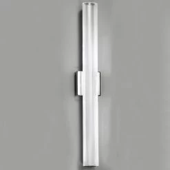 The Landor Wall Sconce features a clean and simple design with a Chrome finish and backplate complemented by a striated clear acrylic tube diffuser.