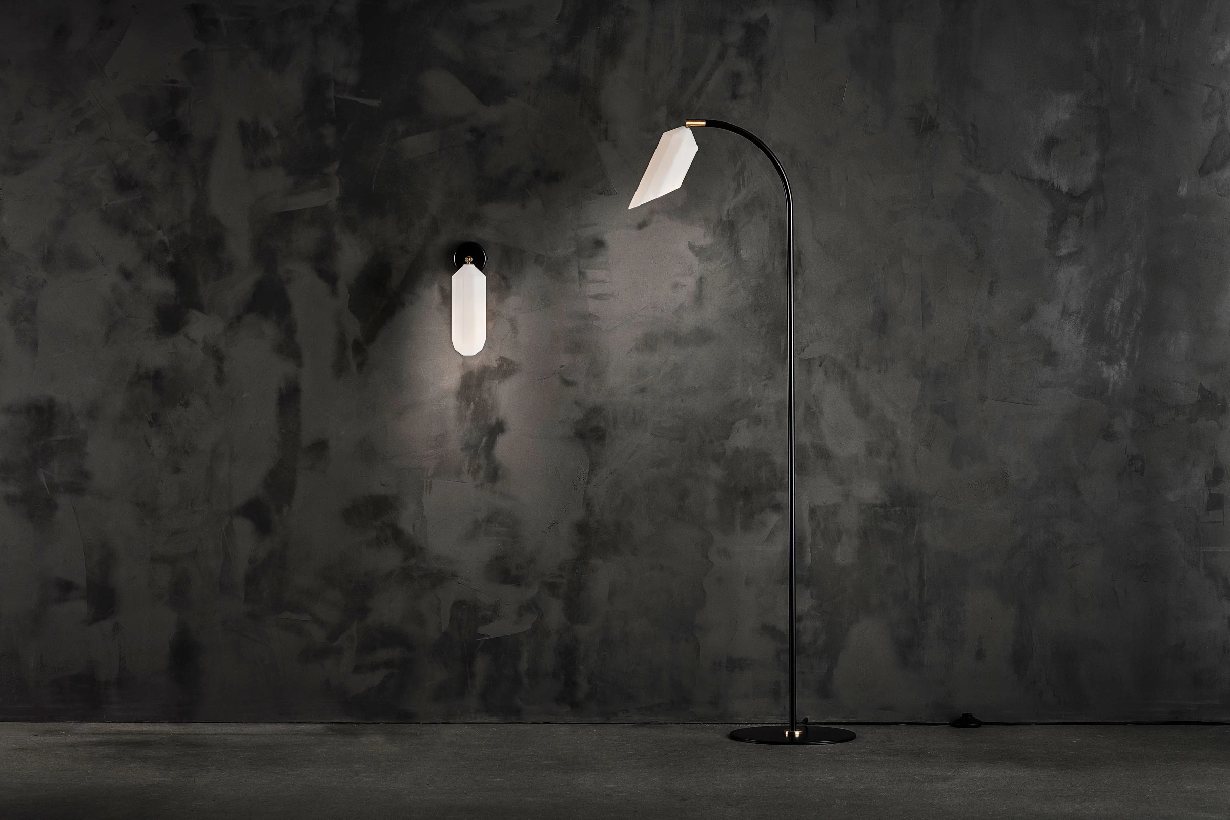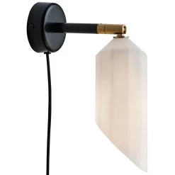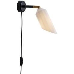 The faceted opal glass shade of the Pliverre Plug-In Wall Sconce adds an eye-catching visual element, while also shielding the bulb from view to provide diffuse lighting with minimal glare. The shade can be tilted to adjust the angle of the light. On/off switch located on cord.