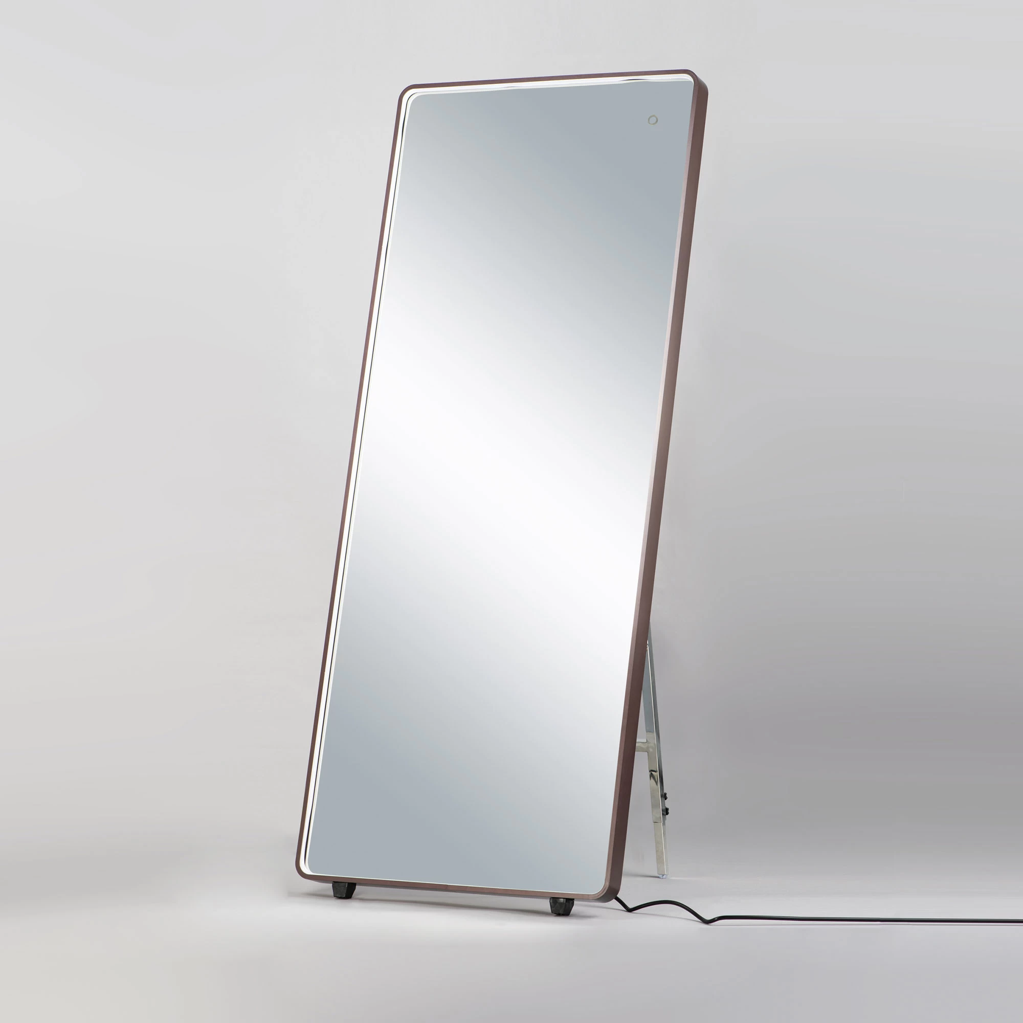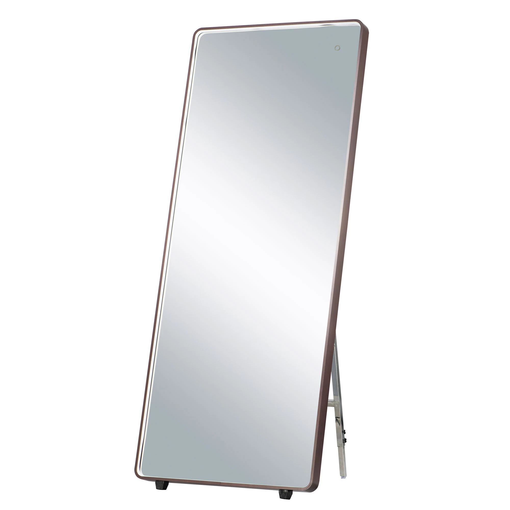 The LED Mirror with Kick Stand features adjustable brightness and color temperature (3000k, 4500k, 6400k). Can stand alone or be hung on a wall.