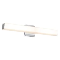The LEDVAN 001 Bathroom Vanity Light features a Chrome or Satin Nickel finish and a square frosted diffuser. Can be installed in horizontal or vertical position. Switch-selectable color temperature: 2700K/3000K/3500K/4000K/5000K – switch in canopy. Integrated dimmable direct-AC LED technology. ETL listed. ADA compliant. Suitable for damp locations.