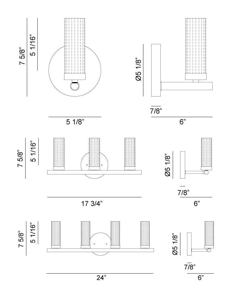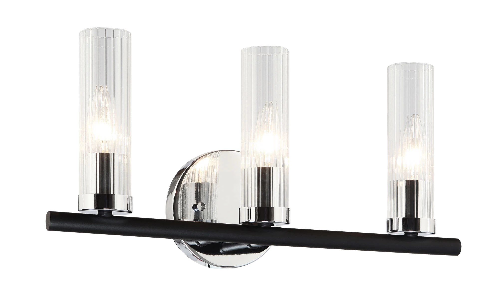 Luminosa Wall Light is a simple elegant addition to any room. The modern design plays on classic scallop edge ribbed Clear glass with a Chrome finish and contrasting Matte Black arms. Available in 6 and 8 light options. Includes 12 feet of wire, 6 feet of chain, and one 6 inch and three 12 inch rods to customize length.