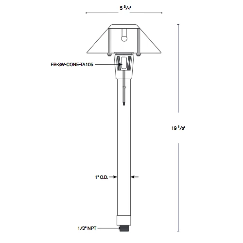 MA-20 Outdoor Path Light is made of solid brass with etched finishes in Verde, Rusty, Matte Bronze, Moss, Black or Aged Brass. 1/2 inch NPT. Dual fin spike included. Suitable for wet locations. Made in USA. 20 year warranty. Requires magnetic transformer, sold separately.
