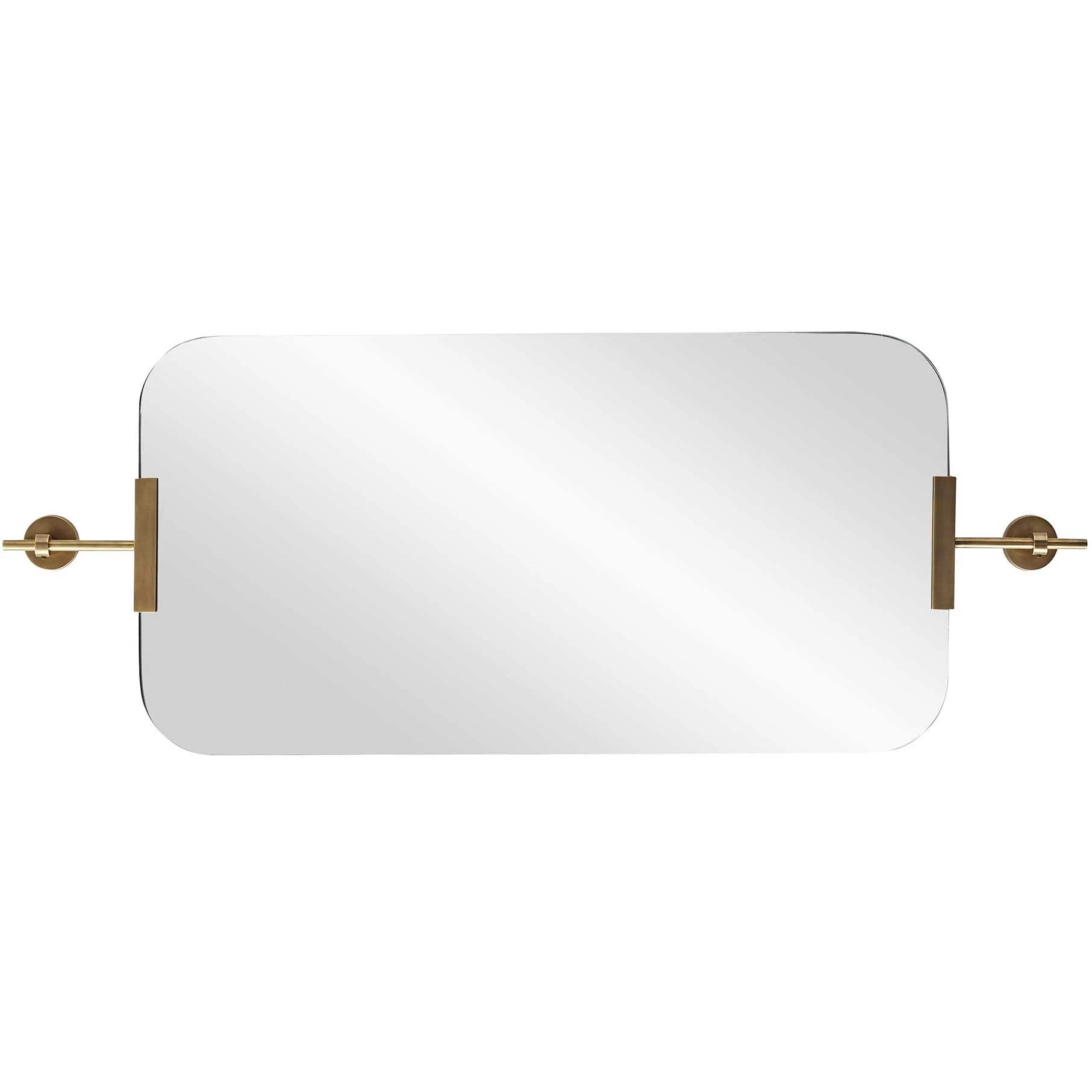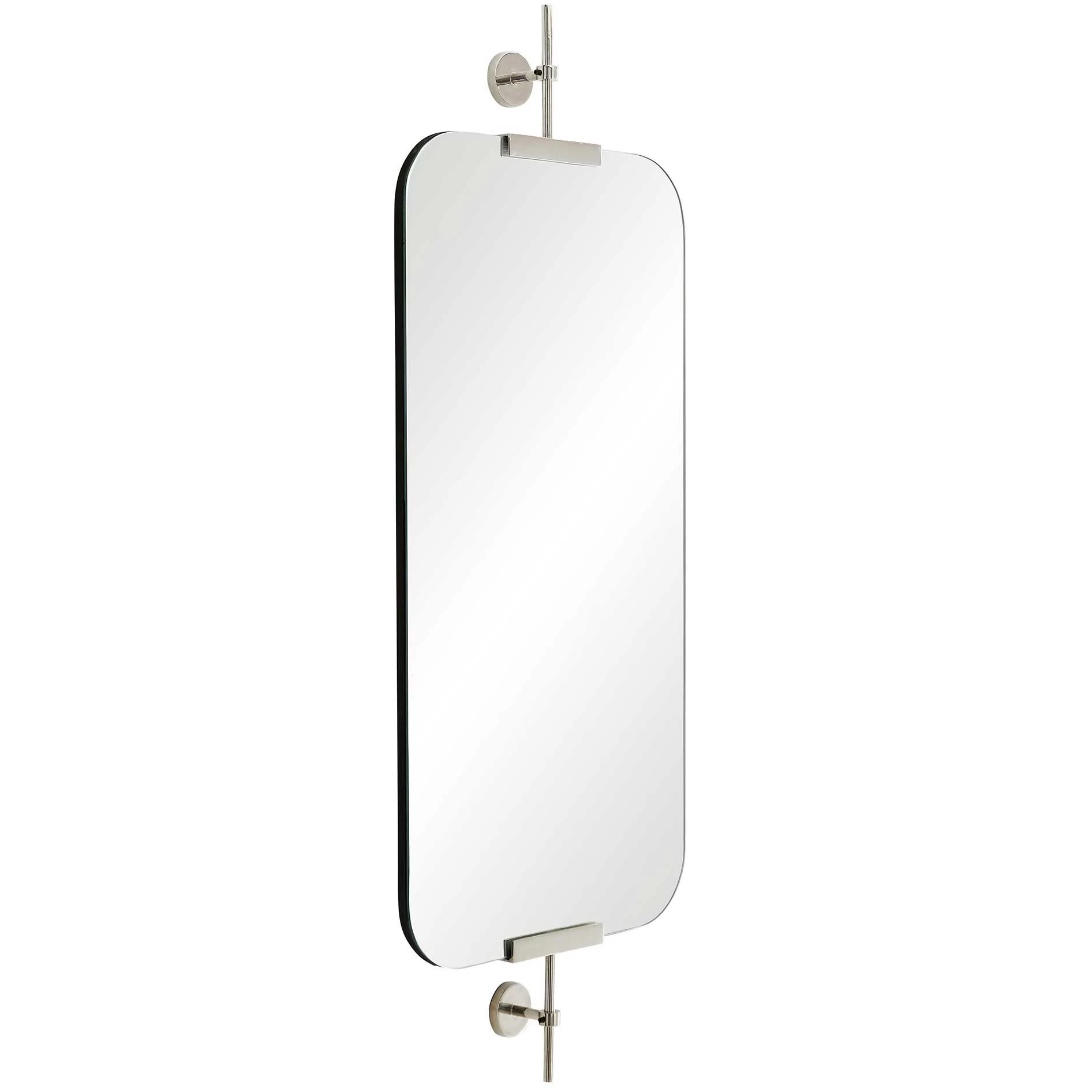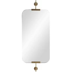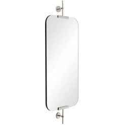 The Madden Mirror offers a chic, versatile look that will add depth to your space with its slightly hovering presence, featuring a plain glass mirror with rounded edges held into two wall brackets. Available finished in Polished Nickel, Bronze, or Antique Brass. Includes two security cleat attachments, may be hung vertically or horizontally.