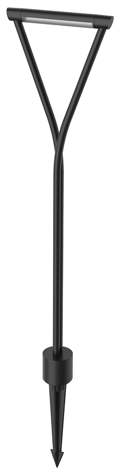 The Maro Outdoor Path Light has a wishbone inspired shape that is both decorative and functional. The bar of light rotates 350 degrees to direct light exactly where you want it. Available with a Frosted polycarbonate diffuser and Black finish in three sizes. Includes garden spike. Wet location rated. ETL listed. Required 12 volt outdoor rated remote transformer (by others), sold separately.