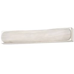 The Millie Bath and Vanity Light features a luxurious piece of Spanish alabaster that is set within a subtlety waxing and waning frame of vintage brass or burnished nickel. While the alabaster is gorgeous unlit, it comes to life when lit, filling the fixture, and the room, with a warm, inviting glow. Can be mounted horizontally or vertically. Note: This fixture does not mount to a standard junction box – a 2×3 inch junction box is required.
