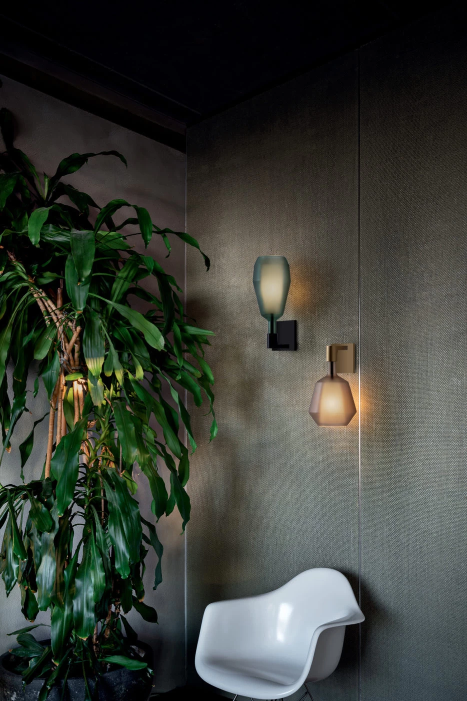 The Mom Fatty Wall Sconce, designed by Umberto Asnago, is inspired by traditional Venetian Murano glass vases. The central Opal White diffuser holds the finished metal socket and is surrounded by uniquely shaped borosilicate glass shade.