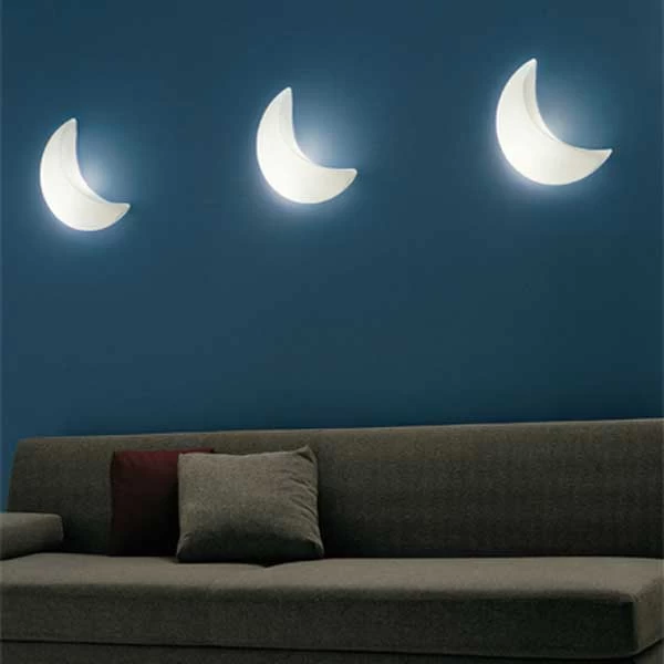 The Moon Wall Lamp is part of a collection of hand-ground cased blown glass swiveling lamps. White glass with frame in Grey painted finish. One 100 watt 120 volt A19 medium base incandescent lamp not included.