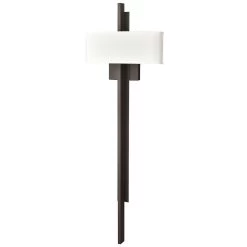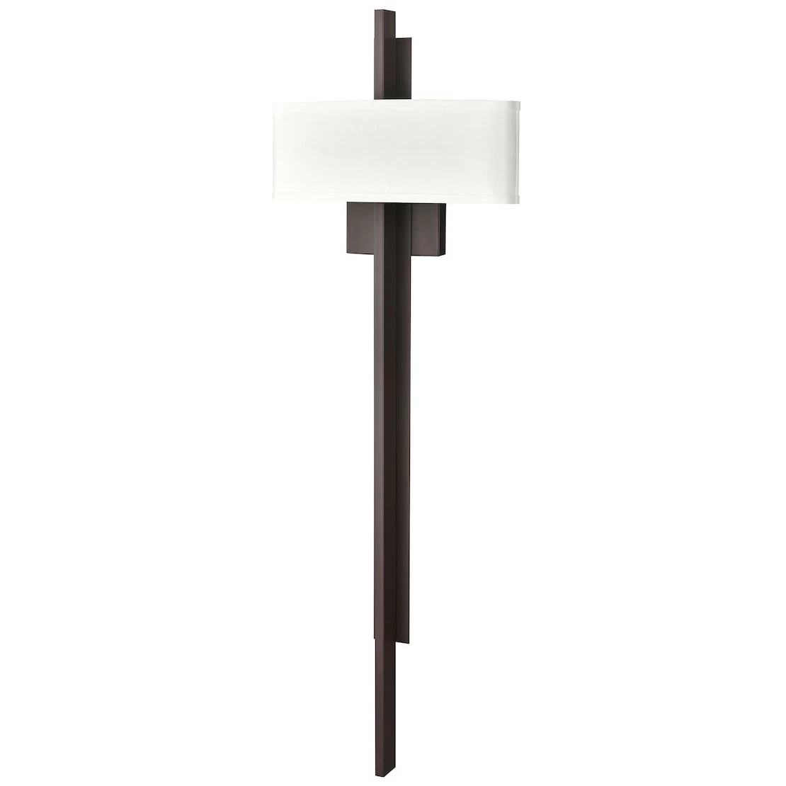 The Murtha Wall Sconce showcases sleek linear fixture with bold a metal frame that is softened with a white oval linen fabric shade.