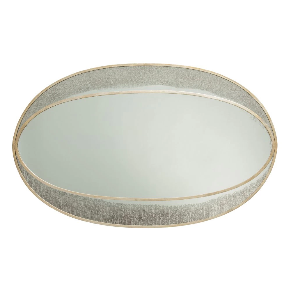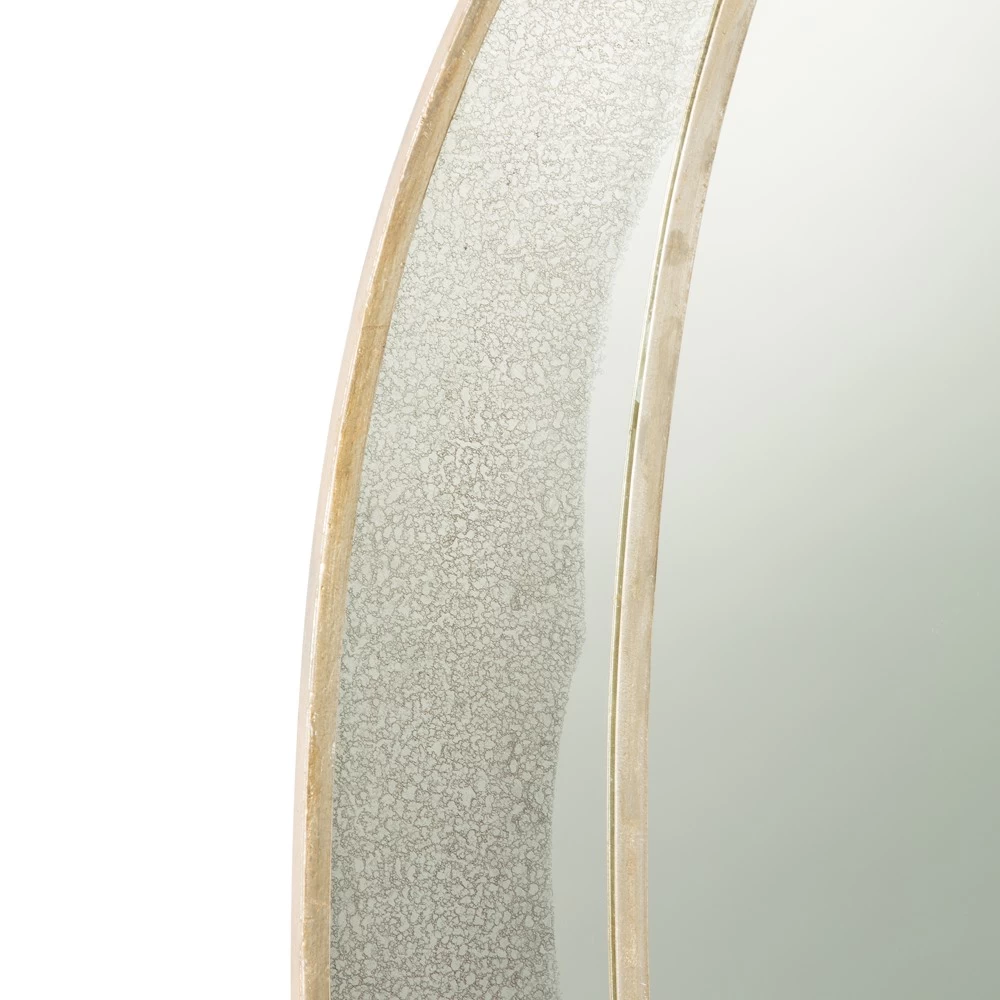 Nadine Mirror features a Champagne Leaf finish. Features a security cleat attachment and can be hung vertically or horizontally. ADA compliant. 32 inch width x 52 inch height x 1 inch depth.