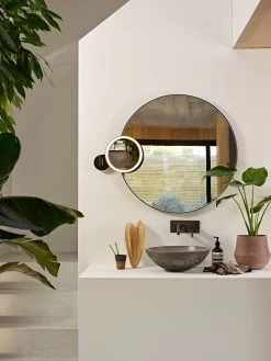 The Nagoya Magnifying Mirror is a perfect accent for a powder room or bathroom counter. The 5x magnification mirror is framed with a ring of light to provide extra lighting while shaving or applying makeup. The adjustable arm allows the mirror to be directed exactly where it is needed.