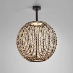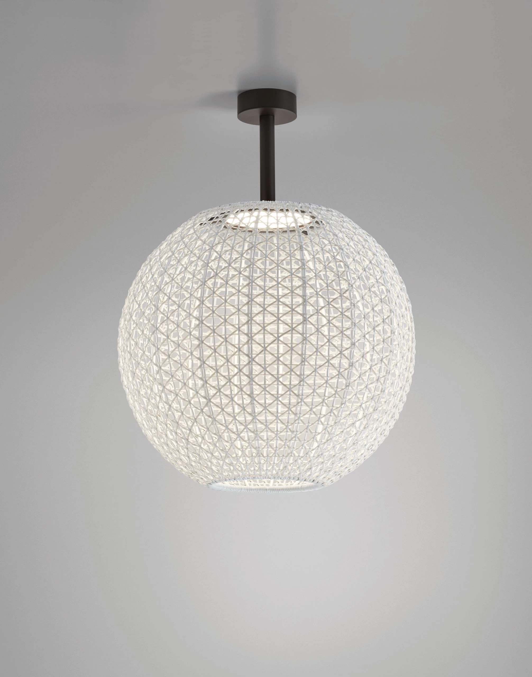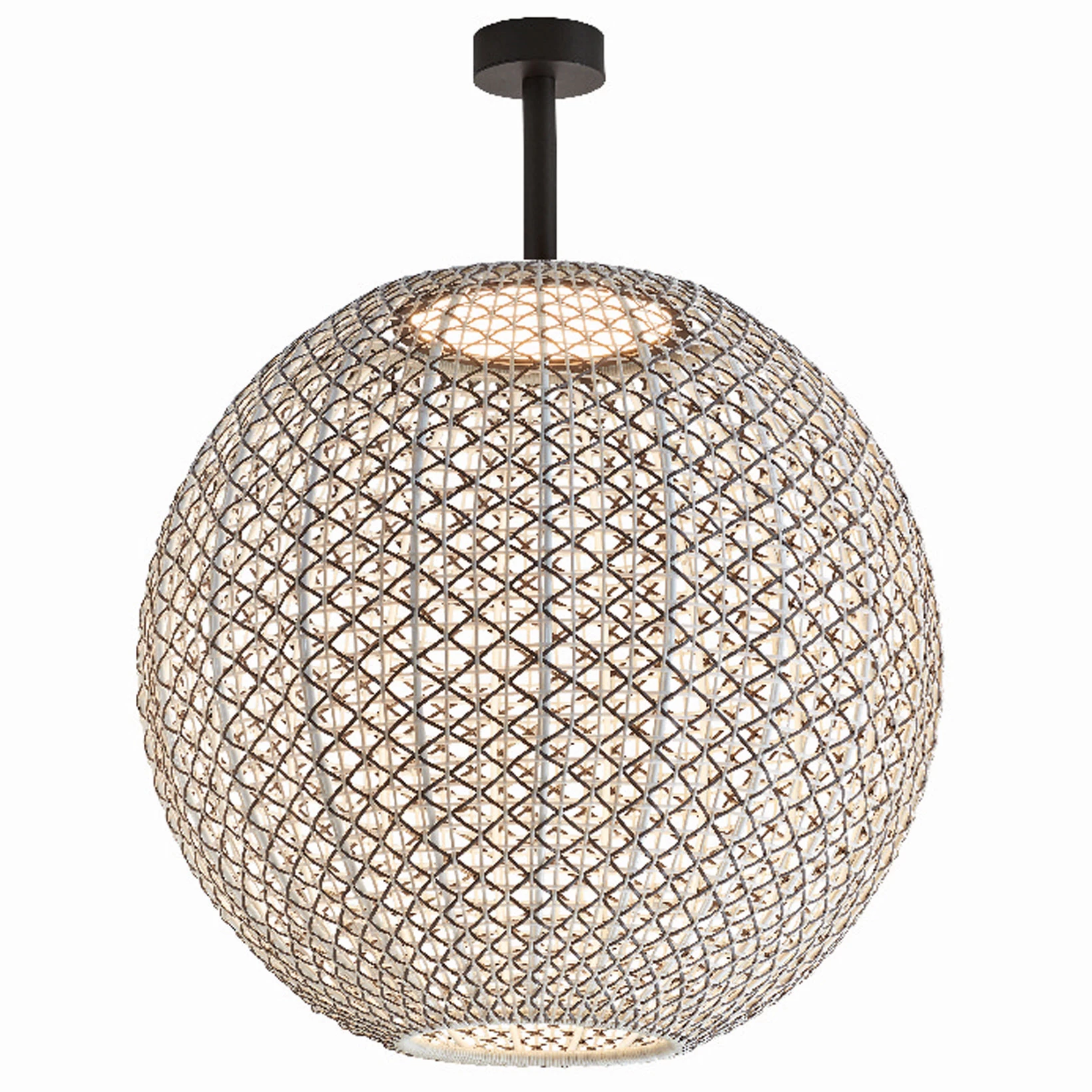 Named for Cala Nans, a small cove in the Mediterranean Sea, the Nans PF/60 Outdoor Sphere Ceiling Light channels the nature and relaxed atmosphere of the Spanish coast. The hand-woven shade made of recyclable, non-toxic polyethylene offers handcrafted appeal and durability for outdoor environments. A polycarbonate diffuser inside the shade softens the LED light. The Nans is perfect for creating a relaxing vibe in residential patios and decks or restaurants and other commercial applications.