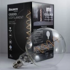 The Nostalgic Medium (E26) Base X-Large G63 Globe Shape Spiral filament bulb features 4 watts LED, 2200K color temperature, 95CRI, 200 lumens. Equivalent to a 60 watt incandescent. 15,000 hour average lamp life. UL listed. Suitable for damp locations. 5 year warranty. Fully compatible with all dimmer types (see attached manufacturer reference for dimmer compatibility).