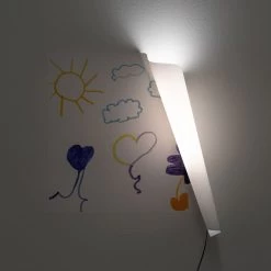 The Pagina Plug-In Wall Light features just three parts: a sheet of paper, a pen, a LED light. A symbolic gesture, somewhere between reality and imagination. A special sheet of paper with tiny suction cups for fixing to a wall and moved at will, arranged in such a way as to create waves and three-dimensional effects. It takes a sheet of light to tell a story.