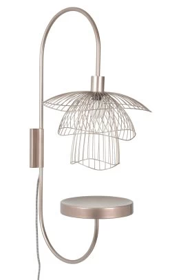 The Papillon Shelf Wall Sconce draws inspiration from the ever enchanting butterfly, offering a three tiered wired shade that floats effortlessly in space, reminiscent of a butterfly flapping its wings, each tier owning a different form to create a piece that will tie seamlessly into a number of modern interiors. Available in Black, Champagne, Pink Copper, Metallic Taupe, or White with matching finish. Includes cord and plug with on/off switch located on lamp’s cord. UL and CUL listed.