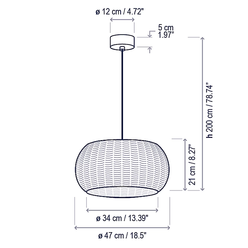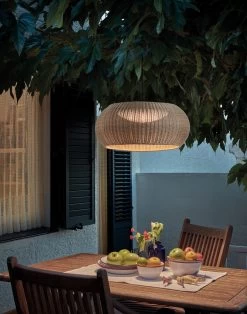 The Perris S/47 Outdoor Pendant is timeless in its design, offering a relaxed, casual look for patios, terraces and porches. Its rounded shade is hand-woven out of recyclable, non-toxic synthetic polyethylene fibers, and the LED light source is protected by a polycarbonate diffuser, ensuring durability outdoors. With its warm glow, the Perris creates a welcoming environment for an evening gathering. TRIAC dimmable.