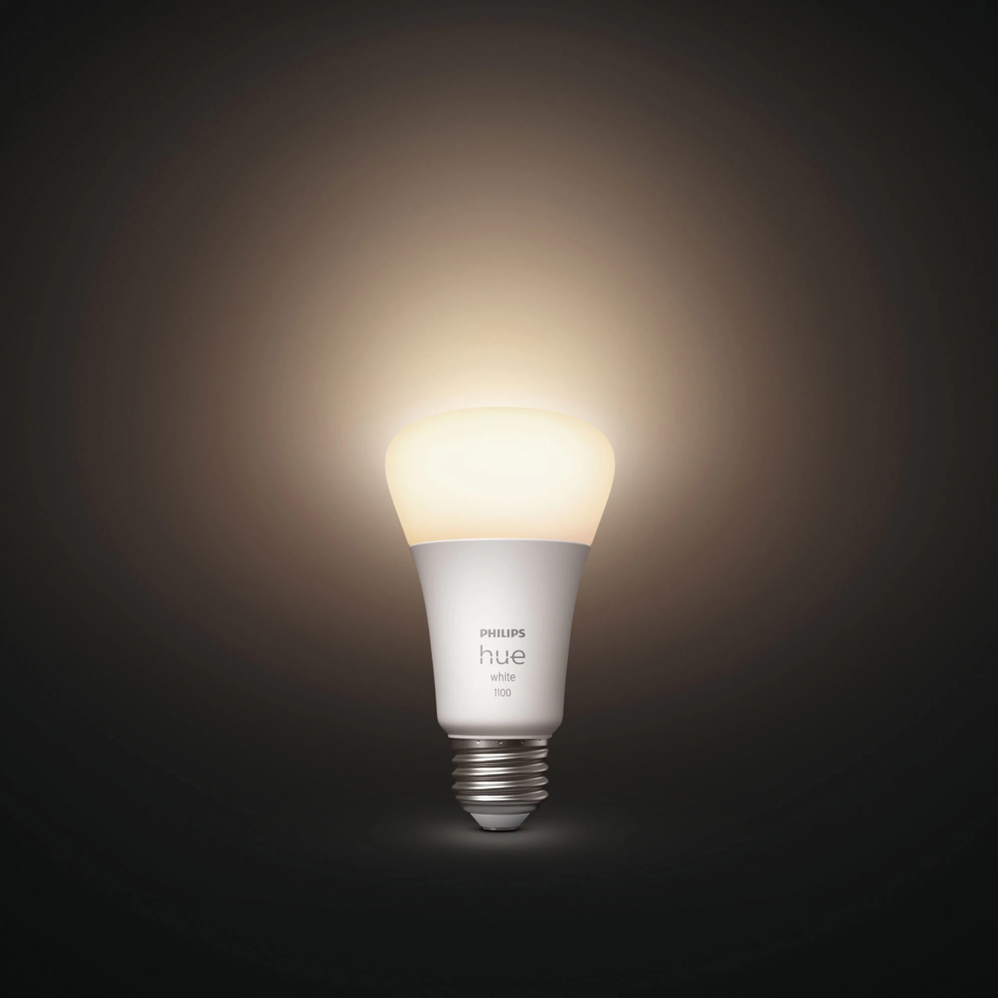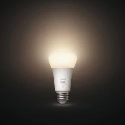 The Hue A19 Bluetooth Smart Bulb Starter Kit includes two A19 medium base bulbs and a Hue Bridge, the hub of Hue’s smart lighting system. The two Philips Hue A19 bulbs provide a sufficient level of warm white light that is bright enough to read on the couch, listen to music, or simply relax in your bedroom. The bulbs offer instant dimming from bright daylight to low nightlights and are suitable for most light fixtures.