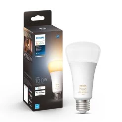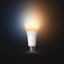 The Hue A21 White Ambiance Smart Bulb is dimmable from warm to cool and offers over 50,000 shades of white light. Control instantly via Bluetooth in one room, or pair with the Hue bridge (sold separately) to unlock the full suite of smart lighting features.