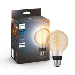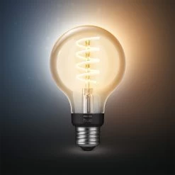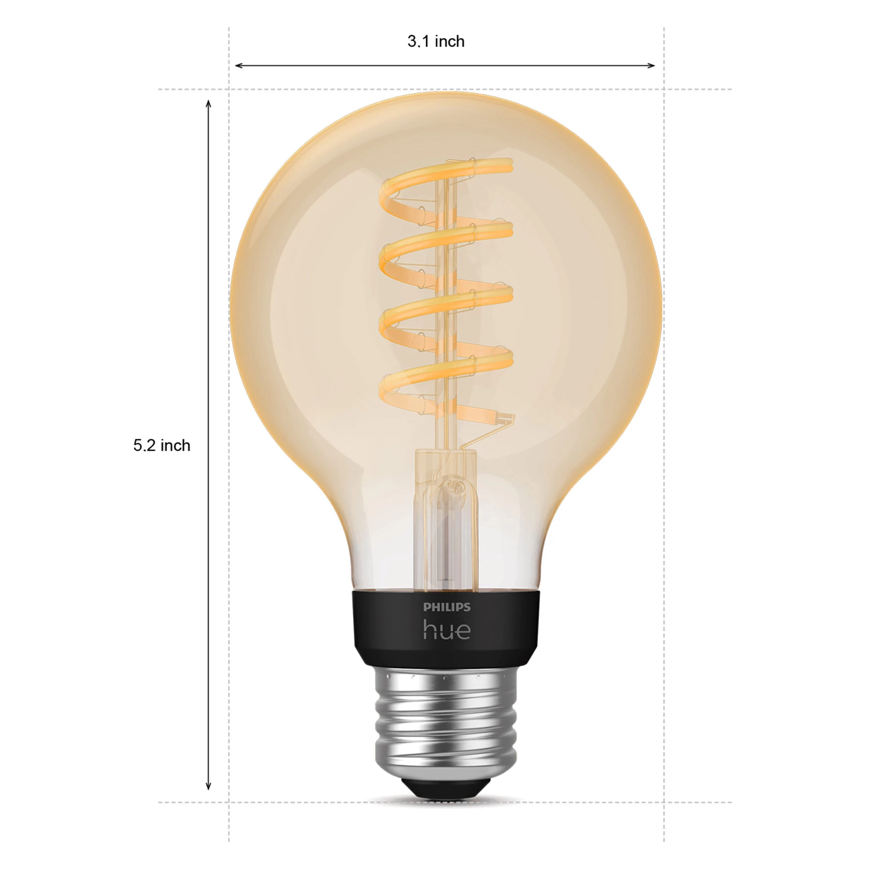 The Hue A19 White Ambiance Filament Smart Bulb will bring a vintage style to any space. It features a coiled filament design inside of a transparent globe. It features fully dimmable controls from warm-to-cool white light (2200K-4500K). It can be used with Bluetooth or paired with a Hue Bridge (sold separately).