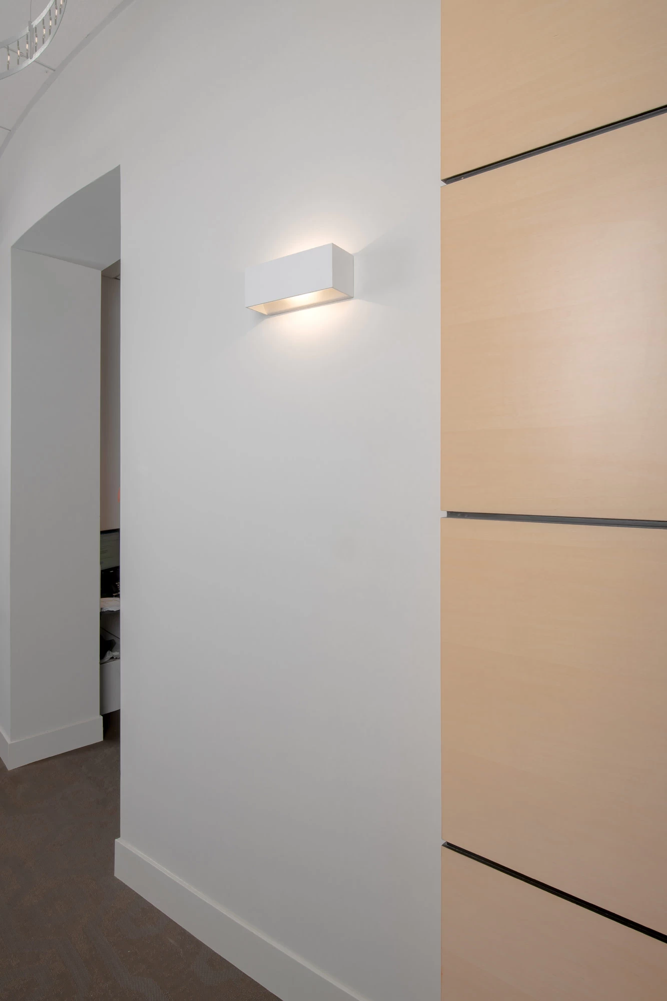The QB2 Wall Sconce is a bi-directional (up/down) LED sconce features extruded aluminum construction with no visible light source from any angle. The clean simple design allows for a modern look with a warm classic glow. Offered in White, Black or Brushed Chrome finish with an inner White reflector. Integral LED driver. Suggested dimmer: Lutron DIVA DVELV-300P, sold separately. ADA compliant. ETL listed. Suitable for damp locations.