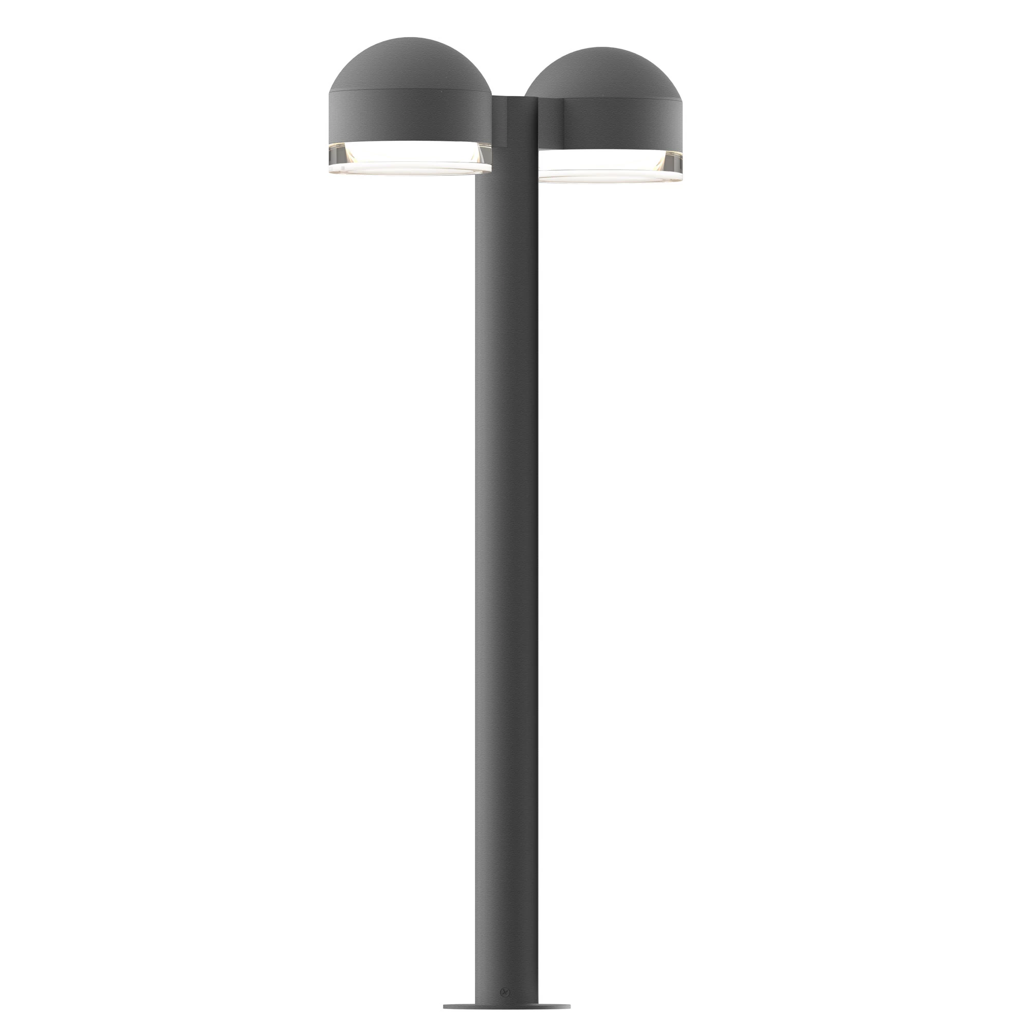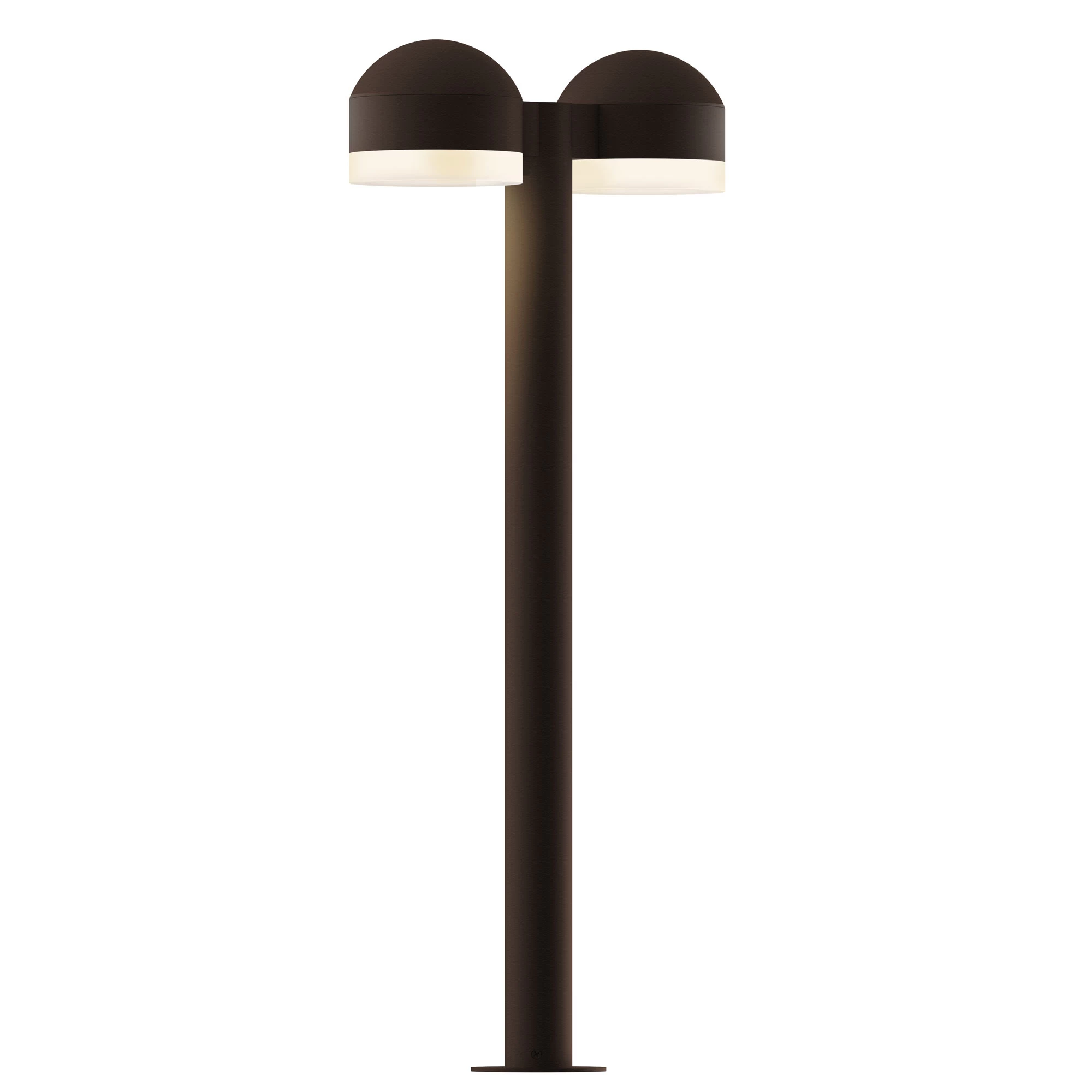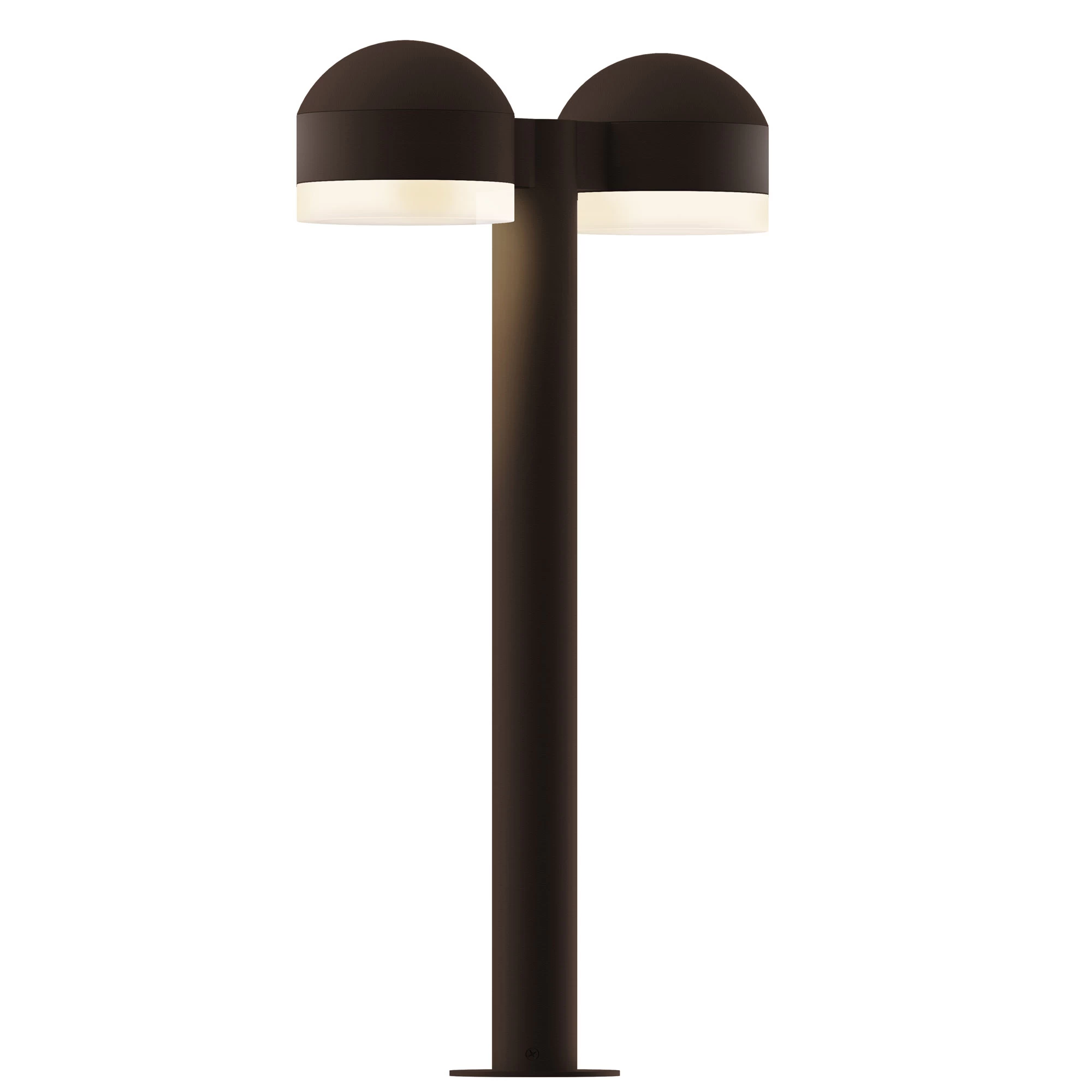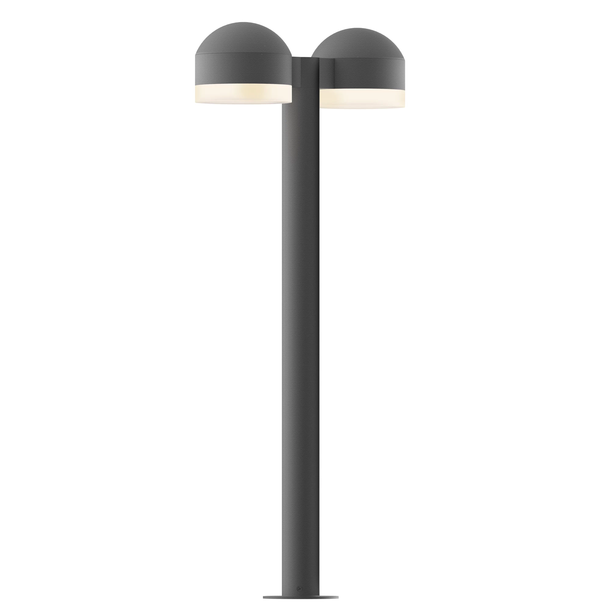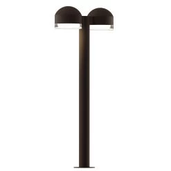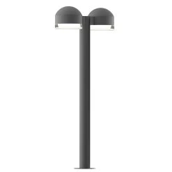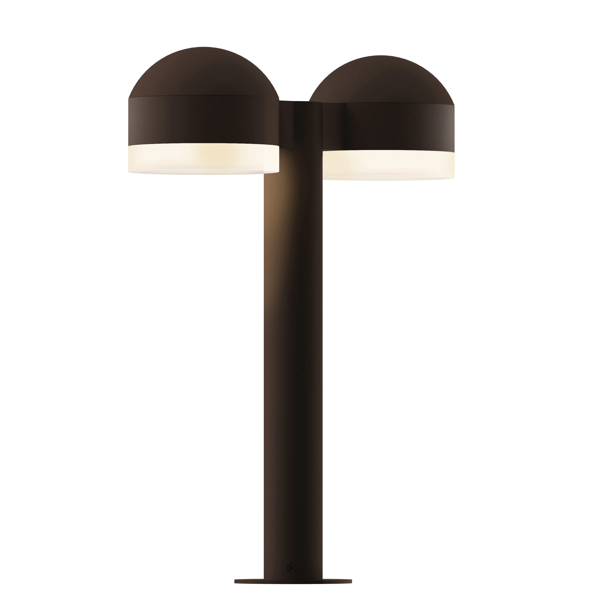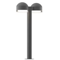 Reals Double DC FH/FW Outdoor Bollard Light adds definition and architectural geometry to outdoor sites and along paths or planted beds. Available with a solid dome top and White polycarbonate or Clear acrylic lower diffuser and Textured Grey or Textured Bronze finish, in small, medium, and large sizes. Two 10 watt LED modules are included. Not dimmable. ETL listed. Wet location rated. Small: 9 inch width x 17.15 inch height. Medium: 9 inch width x 23.75 inch height. Large: 9 inch width x 29.75 inch height.