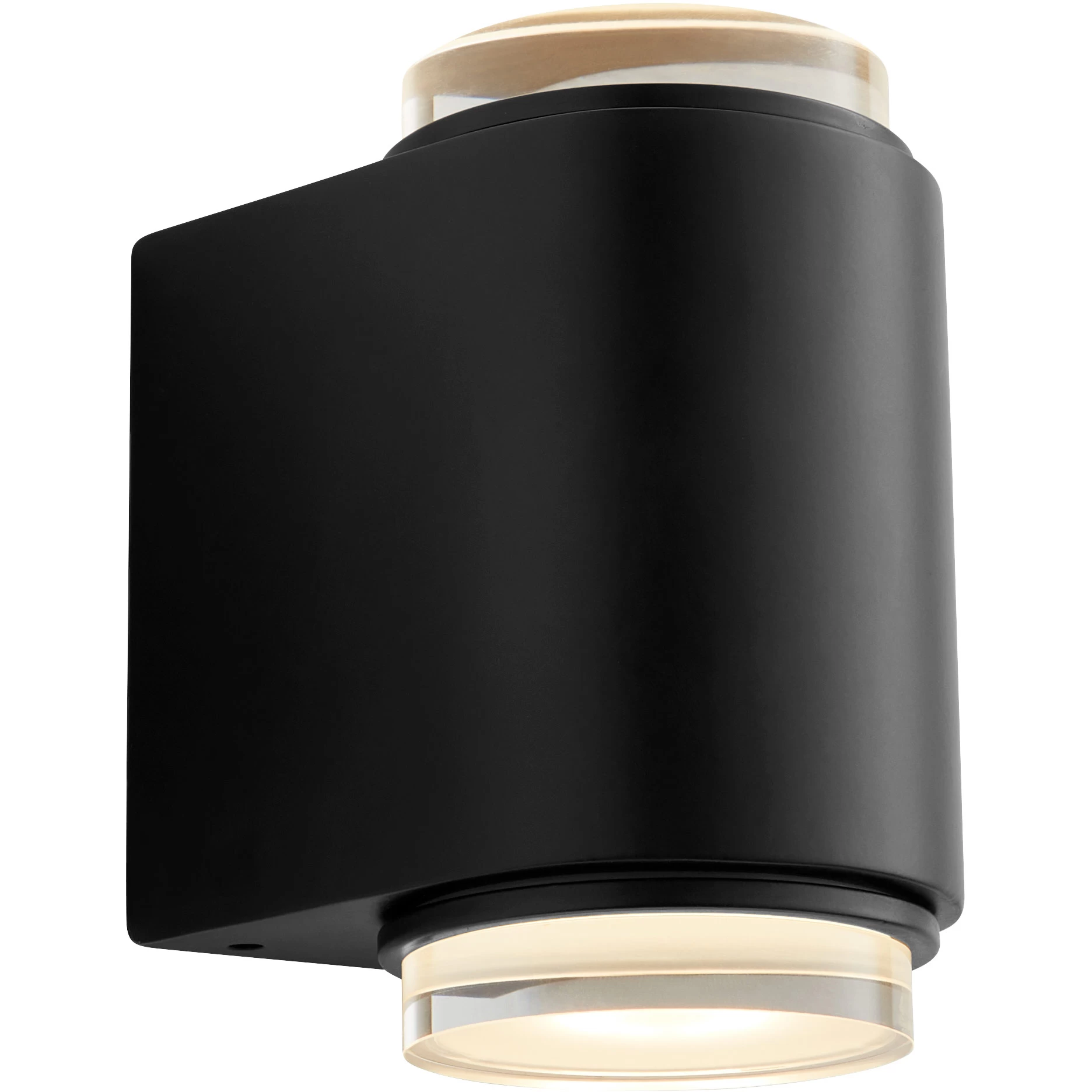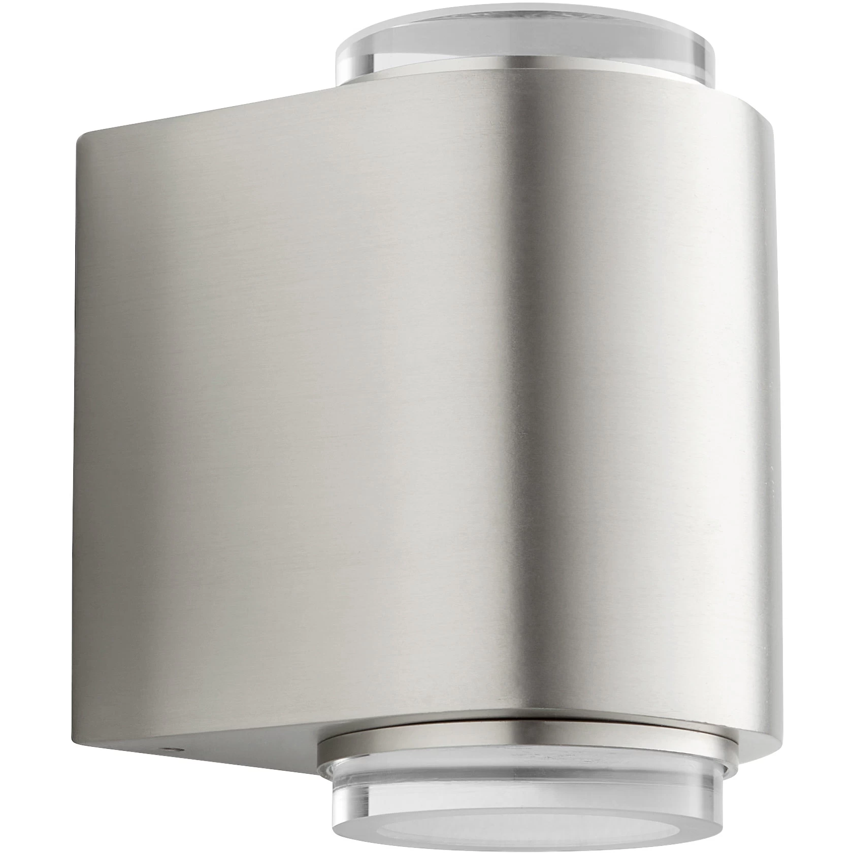 Clear glass is paired with sleek aluminum housing to create the Rico Outdoor Wall Sconce. The polished, rounded silhouette works well in contemporary outdoor spaces including front entrances, decks and balconies. Dimmable with a TRIAC dimmer.