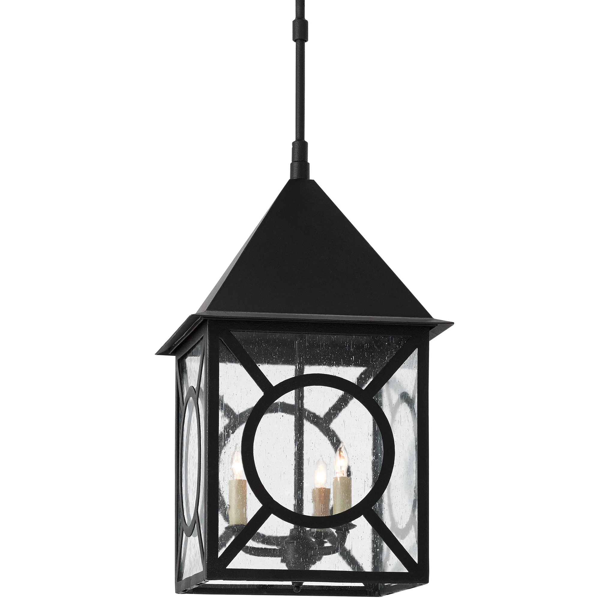 The Ripley Outdoor Lantern offers a classic look, featuring a Midnight finished wrought iron frame with panels of Clear Seeded glass. Available in two sizes. Rated for wet locations. UL and cUL listed.