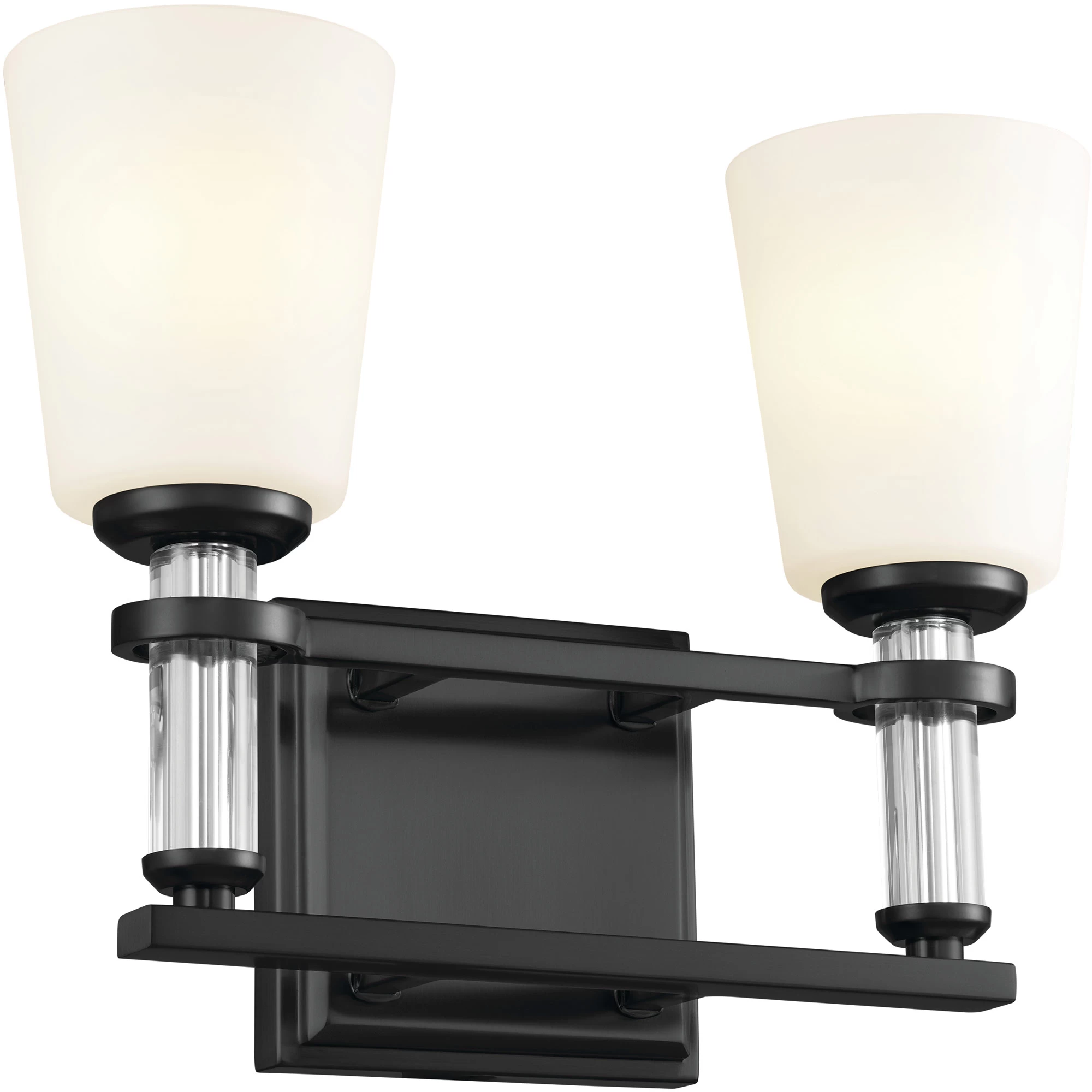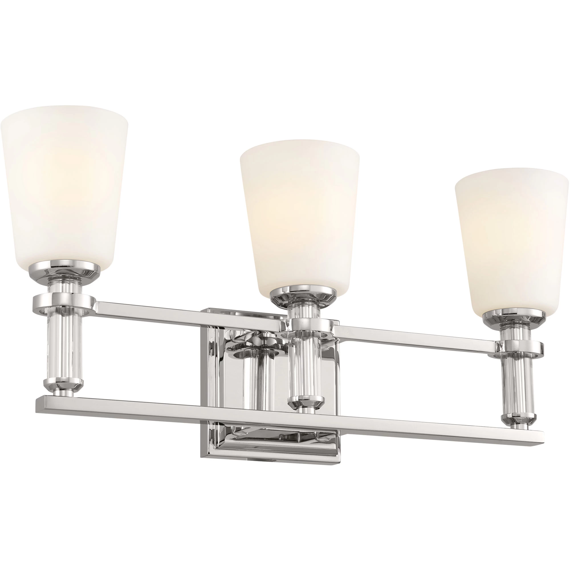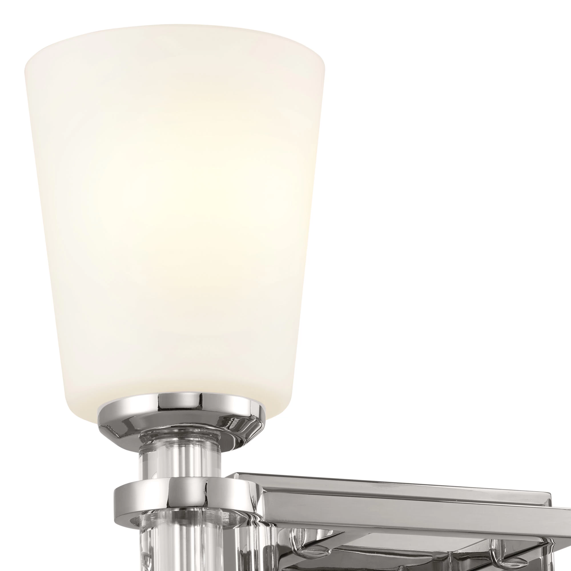 The Rosalind Bathroom Vanity Light brings refinement to your bathroom or powder room, with its satin etched cased opal glass shades and crystal candle sleeves.