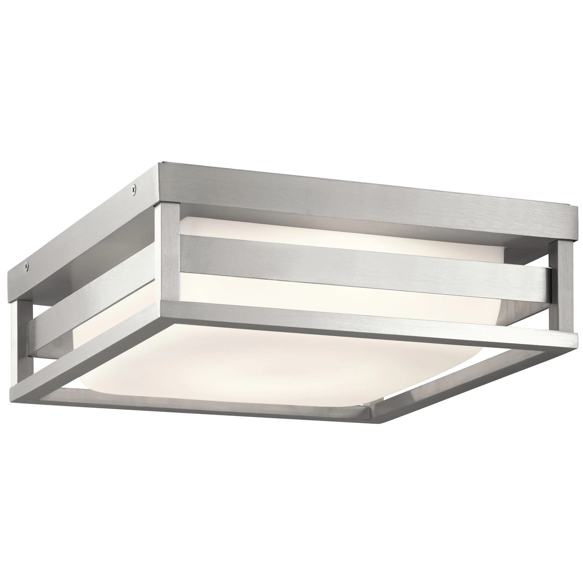 The Ryler Outdoor Ceiling Light Fixture delivers architectural sophistication. Ideal for contemporary of midcentury era styled homes. Modern and classic all in one. The glass contrasts beautifully against the metal finish, whether the light is on or off. Features Satin Etched Opal cased glass with Brushed Aluminum or Black finish. ETL listed. Suitable for damp locations.