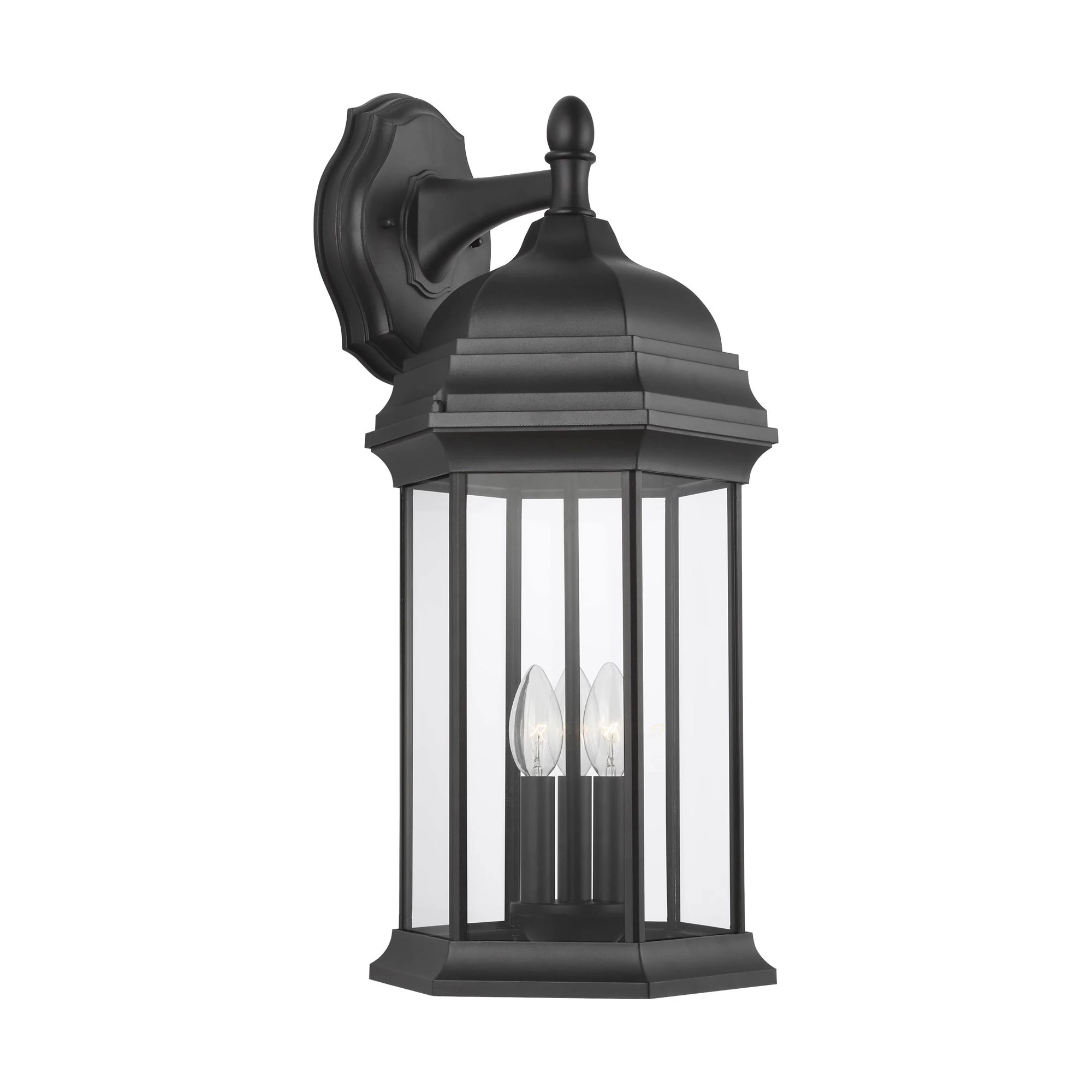 The Sevier Outdoor Wall Light is an extra large piece that brings a timeless design to new heights with traditional design details found in classic outdoor fixtures. Features Clear glass with a Black or Antique Bronze finish. Two lamping options. LED dimmable with an LED compatible dimmer, sold separately. ETL listed. Suitable for wet locations.