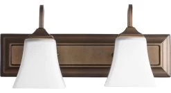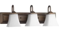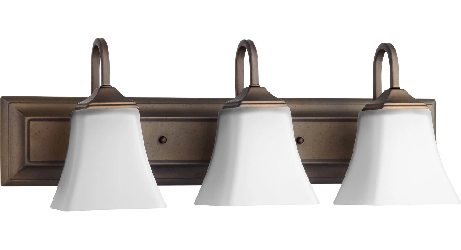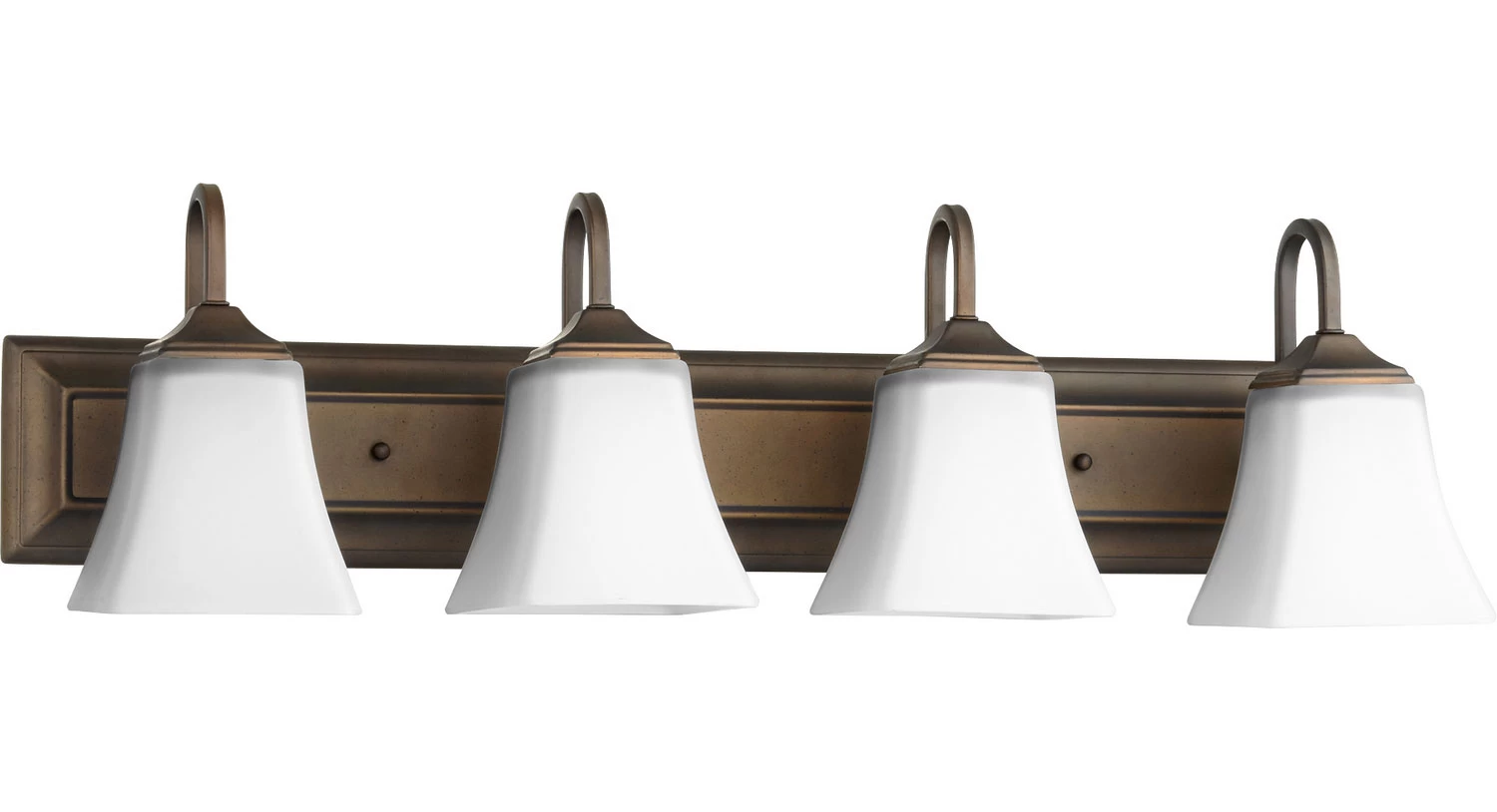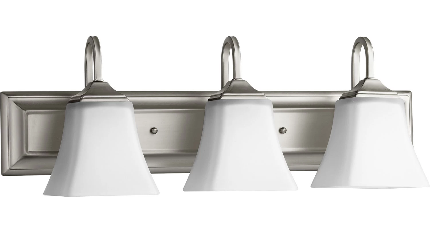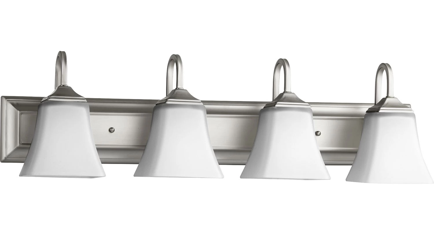 Signature 5104 Bathroom Vanity Light is a traditional piece with clean lines and crisp shades, making this perfect in any style bathroom. Available with Satin Opal shades and a Satin Nickel, Polished Nickel, Aged Silver Leaf, or Oiled Bronze finish in 2, 3, and 4 light options. Damp location rated. UL listed.