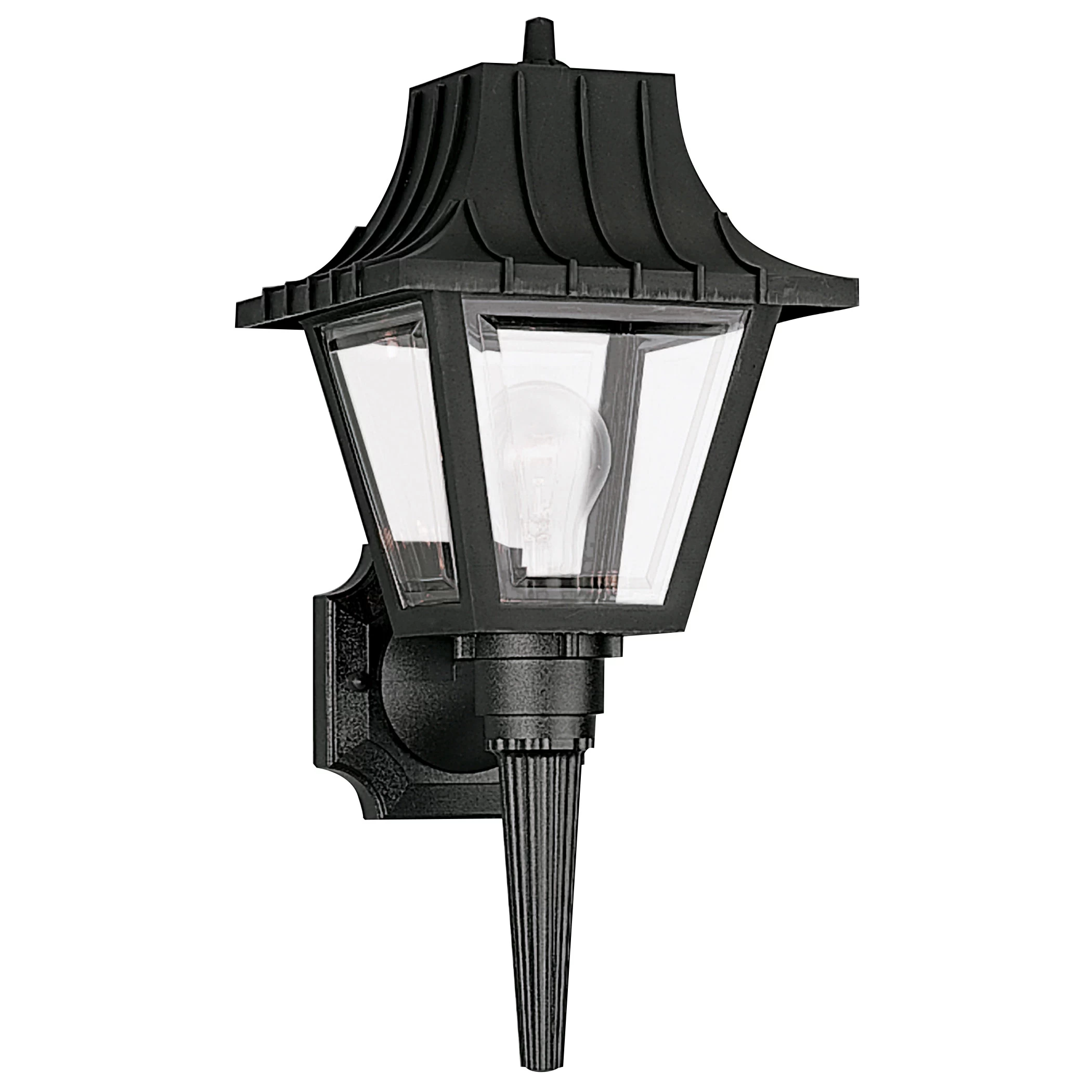 The Signature 8720 Outdoor Wall Sconce offers a stylish lantern silhouette crafted from durable polycarbonate and clear beveled acrylic panels. A sharply curved roof and fluted tail give this piece a traditional look, while a monochrome finish allows it to complement a variety of design styles.