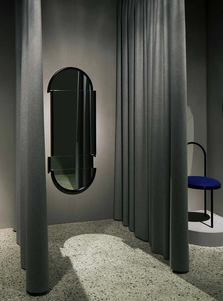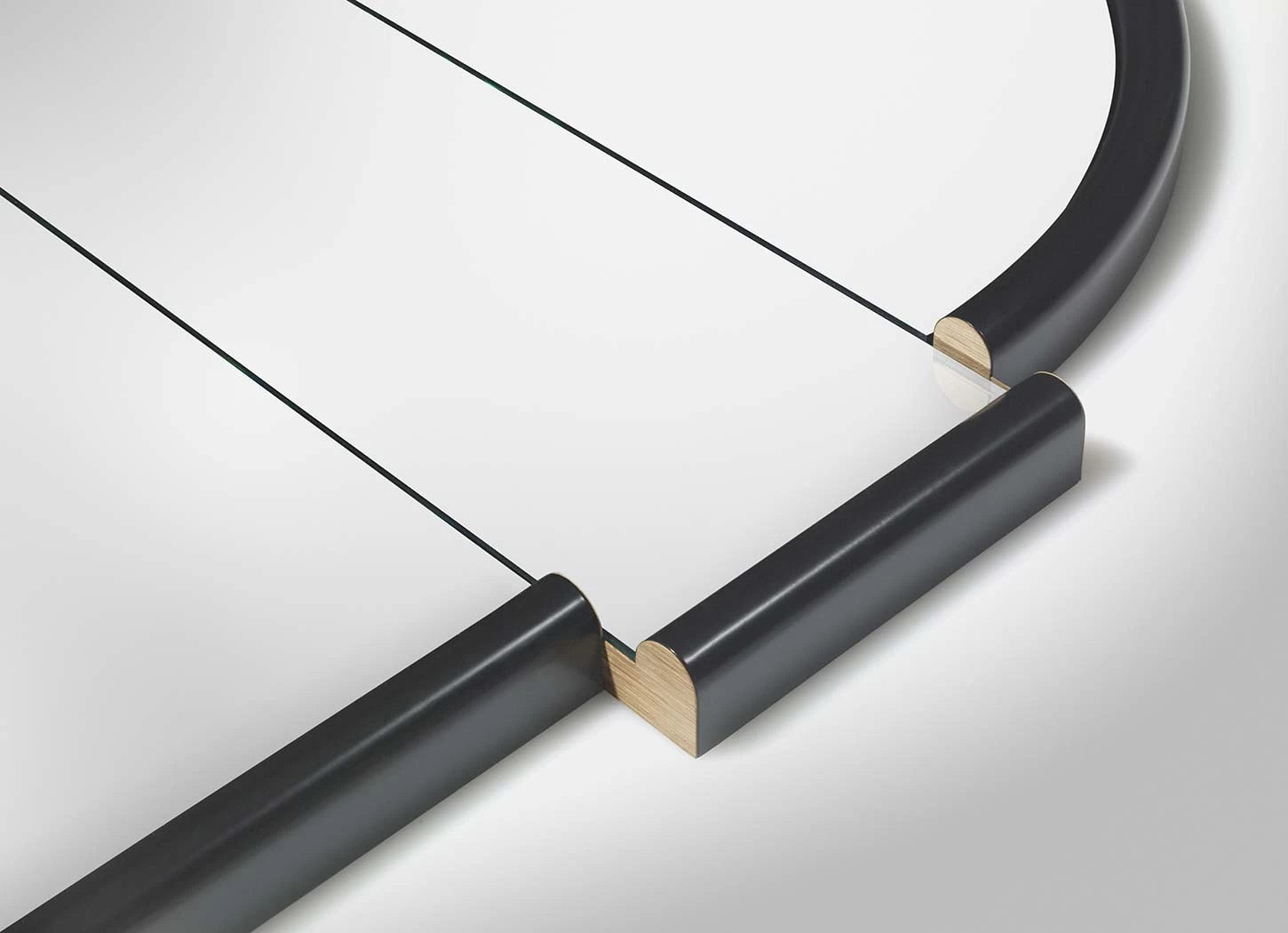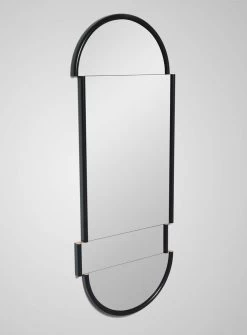 Split Long Mirror, designed by Lee Broom, features a precision cut slice, shifted from its original position to reveal an oak trimmed section of the Black frame. This unique piece is perfect for any area. ADA compliant. 25.2 inch width x 63 inch height x 1.58 inch depth.