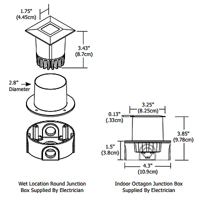 Sun3 3 Inch Round RGB LED Recessed Uplight/Steplight provides dynamic color effects with red, green, blue and amber (or white) LEDs. Fixture is offered with a 16, 23, 36 or 47 degree precise focus, tempered glass lens and marine grade aluminum beveled edge trim in Satin Aluminum finish. The fixture is rated for outdoor/ocean front environments using a wet location electrical box or indoor using a standard octagon electrical box. ETL listed. Fixture includes 5 year warranty. Required remote 700mA constant current driver/controller (powers up to 8 fixtures), external CTP or CDP DMX controller, junction box cover, wood spring clips, and optical accessories sold separately.