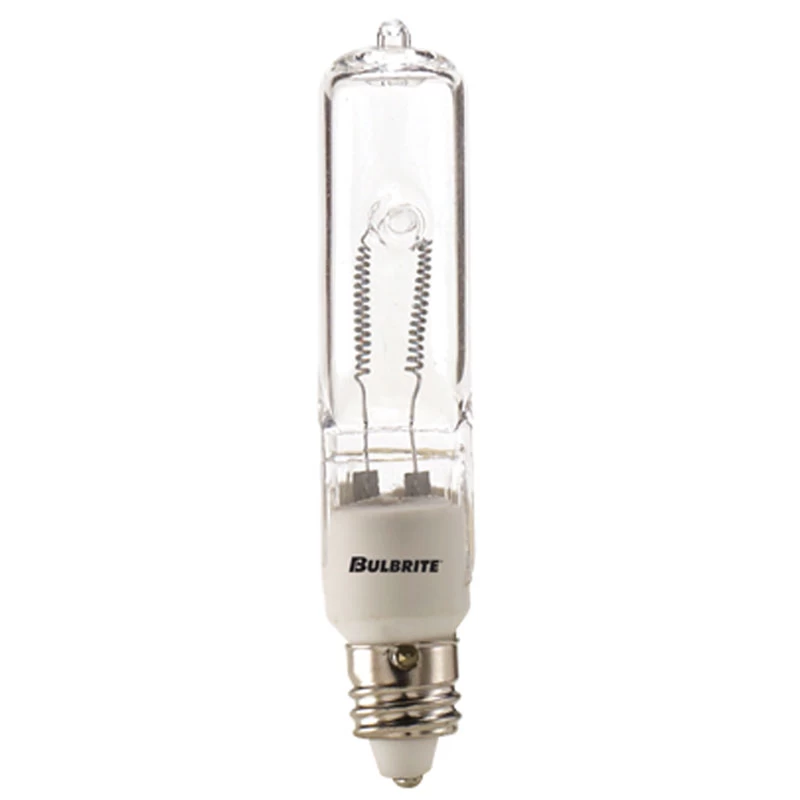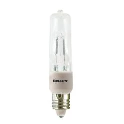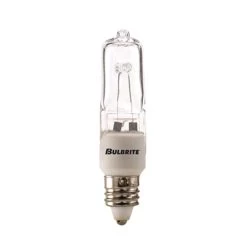 T4 Mini Candelabra (E11) Base 120 Volt Halogen. Available in a 35, 50, 75, 100, 150 or 250 watt option in Frost or Clear. 2900K color temperature. Average lamp life 2.000 hours. 35, 50 75, and 100 watt: .50 inch diameter x 2.25 inch length. 150 and 250 watt: .50 inch diameter x 2.875 inch length. Sold as a 5-pack.