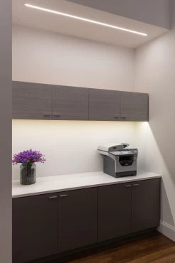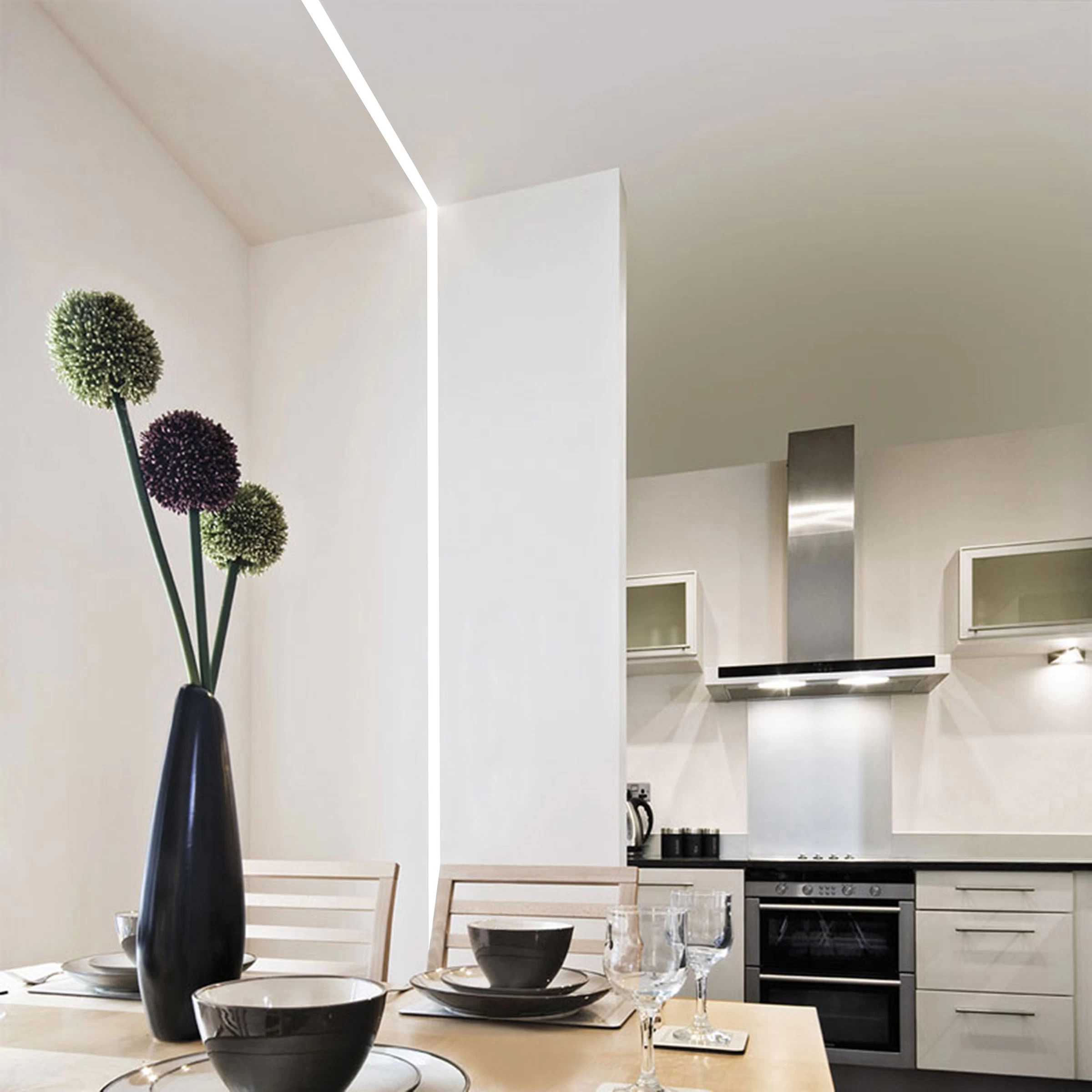 The TruLine .5A 5W 24VDC Plaster-In 24VDC LED system provides smooth and glare-free general illumination using designer-grade high CRI LEDs. TruLine .5A recesses within 5/8 inch drywall without any joist modification. The slim extrusions, LED strips, and lenses are field-cuttable.