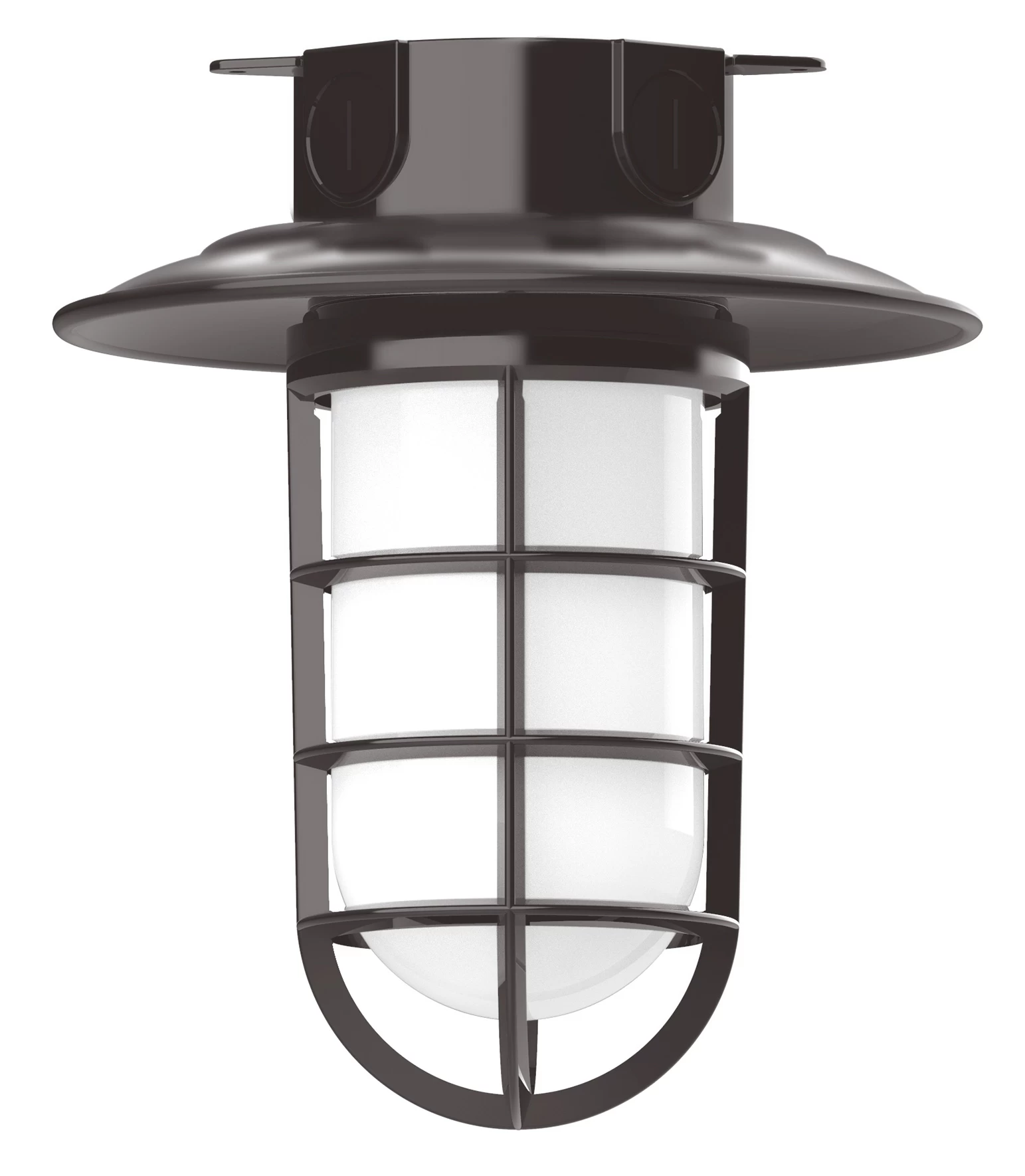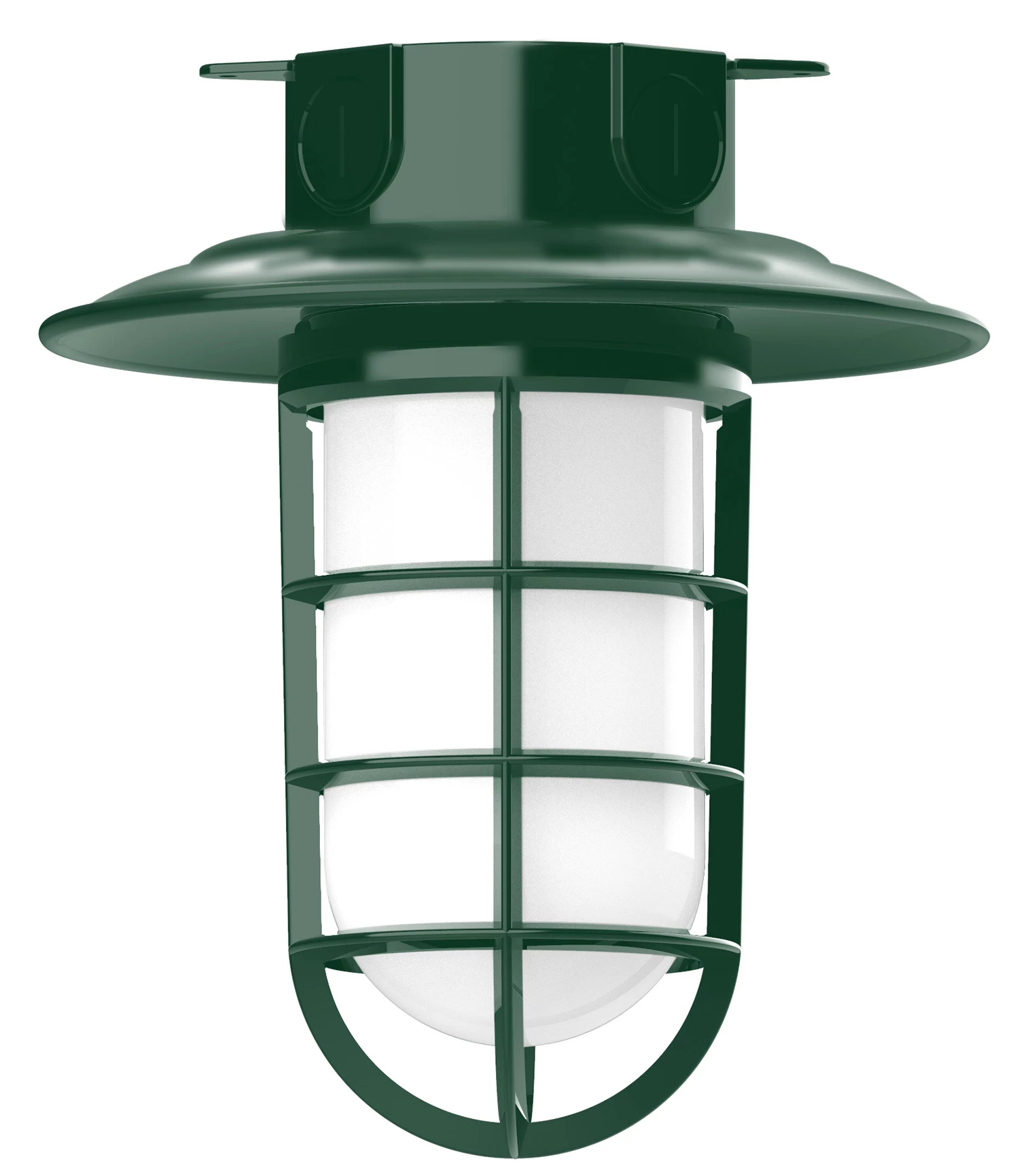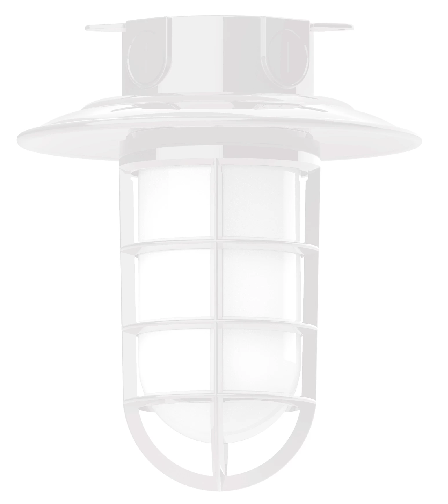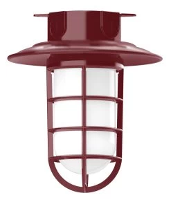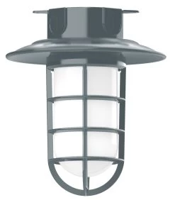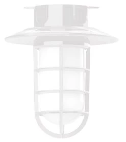 The Vaportite Cap Outdoor Ceiling Flush Light adds a bold industrial style with hints of industrialism to your exterior space. The smooth frame is complemented with a Frosted glass jar, nautical inspired cage and cap, casting warm shadows across your space. The Polyester powder coat finish provides color retention and scratch resistance.