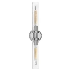 The Vaughn Bathroom Vanity Light brings industrial chic to your interior space by combining modern and vintage elements for a refined look. Clear glass shades add dimension while sleek finishes complete the look. Finished in Heritage Brass, Chrome, or Black Oxide. May be mounted horizontally or vertically. Damp location rated. UL and CSA listed.