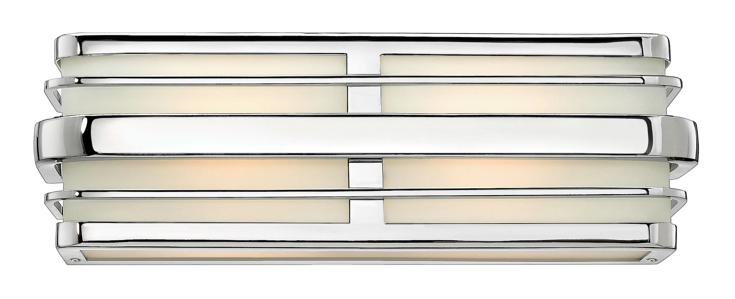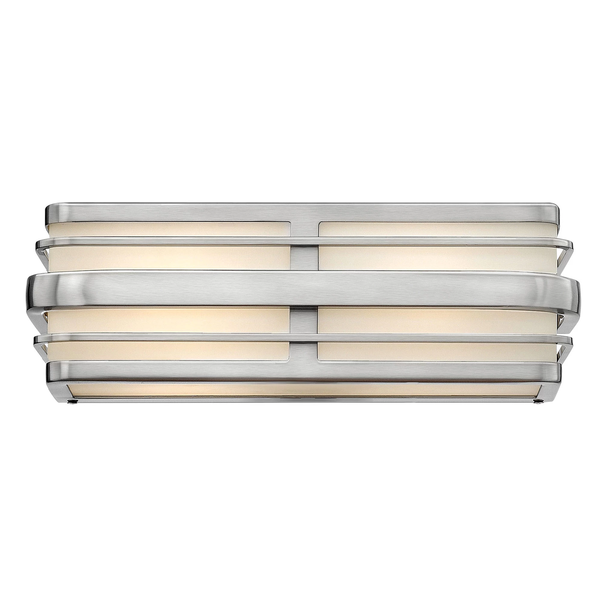 The Winton Bathroom Vanity Light features a Brushed Nickel or Chrome finish with an Etched Opal Glass diffuser. UL listed for damp locations.