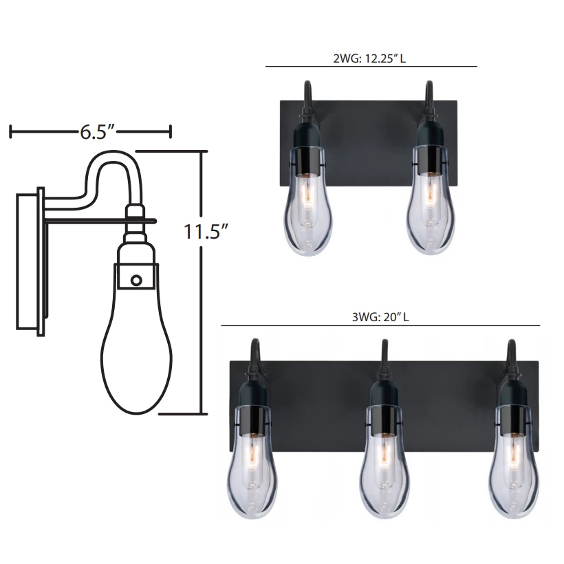 The Wish Bathroom Vanity Light brings a timeless beauty to your interior space. The classic teardrop shape features gradient glass seeming to hang gracefully from the frame. Available in 2 and 3 light options.